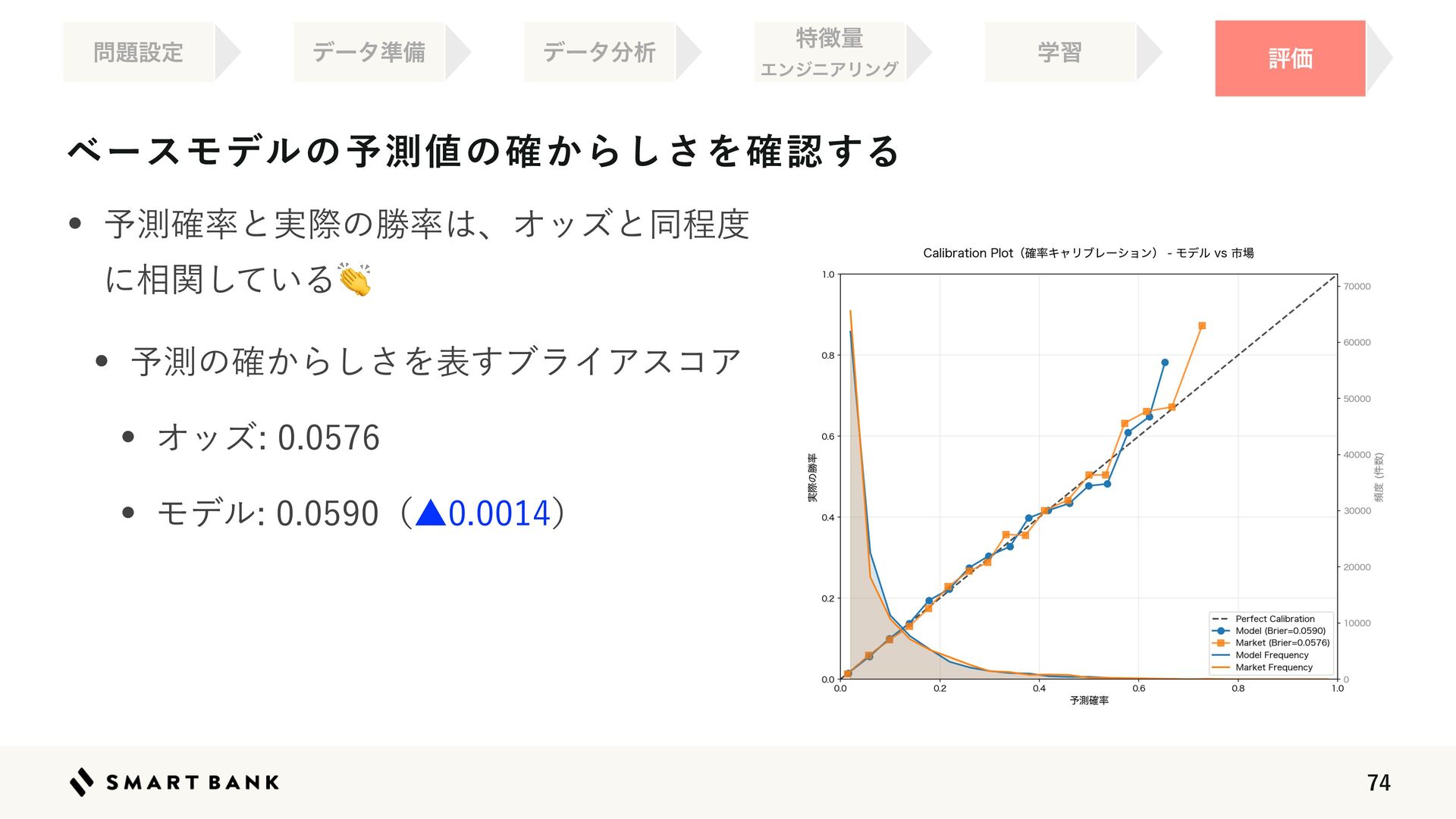 30.  ϕʔεϞσϧͷ༧ଌ஋ͷ͔֬Β͠͞Λ֬ೝ͢Δ ධՁ σʔλ४උ σʔλ෼ੳ ಛ௃ྔ ΤϯδχΞϦϯά ֶश w ༧ଌ֬཰ͱ࣮ࡍͷউ཰͸ɺΦοζͱಉఔ౓
