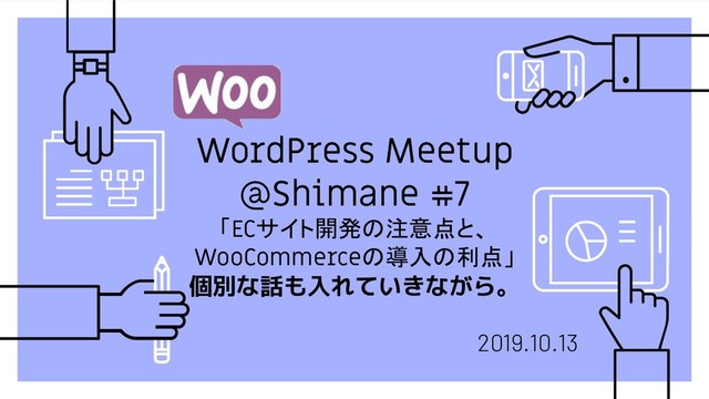 WordPress Meetup @Shimane #7 「ECサイト開発の注意点と、 WooCommerceの導入の利点」 2019.10.13 個別な話も入れていきながら。