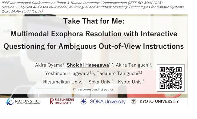 /HYHO /HYHO 7RWDO 9*31>@ (&5$3>@ 0,(/ RXU +XPDQ +XPDQ ZR,QWHUDFWLRQ x 1.2 x 0.54 • 0,(/ VKRZHGWLPHVKLJKHUSHUIRUPDQFHWKDQ(&5$3DERXW65 7RS • ,Q/HYHOTXHULHV0,(/FRXOGVXSSOHPHQWLQIRUPDWLRQODFNLQJLQODQJXDJHTXHULHVXVLQJ+5, • &RPSDUHGWR+XPDQDQG+XPDQ ZR,QWHUDFWLRQ 0,(/DFKLHYHGDSSUR[LPDWHO\65 7RS [11] J. Hu et al “VGPN: Voice-Guided Pointing Robot Navigation for Humans,” IEEE ROBIO, pp.1107–1112, 2018. [6] A. Oyama et al. ECRAP: Exophora Resolution and Classifying User Commands for Robot Action Planning by Large Language Models. IEEE IRC, pp.1–8, 2024. R = 1 7ULDOV 6XFFHVVRU)DOVH RU 5HVXOWV&DVHRIXVHULVYLVLEOHIURPWKHURERW VSRVLWLRQ