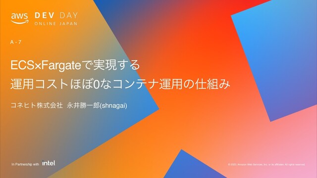 rights reserved. In Partnership with ECS×FargateͰ࣮ݱ͢Δ ӡ༻ίετ΄΅0ͳίϯςφӡ༻ͷΈ ίωώτגࣜձࣾ ӬҪউҰ(shnagai) A - 7