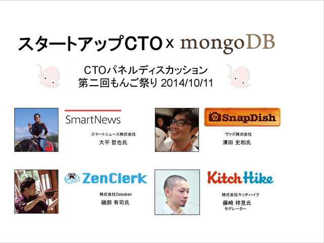 MongoDBのイベント第二回もんご祭りで行われたスタートアップCTOによるパネルディスカッション。 http://shoken.hatenablog.com/entry/2014/10/31/075327