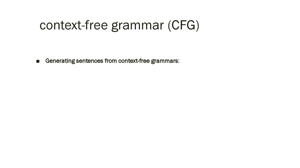 typically, grammar concepts such as CFG, and probabilistic context-free grammar (PCFG), and a search strategy is used to give a complete syntactic structure to a sentence. ▪ Shallow parsing is the task of parsing a limited part of the syntactic information from the given text.