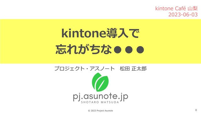 2023-06-03に開催された、kintone Café 山梨 Vol.1でお話したスライドです。 kintone導入で忘れがちな〇〇/kintone Café 山梨 Vol.01 「プロセス管理におけるコミュニケーション機能理解の重要性」