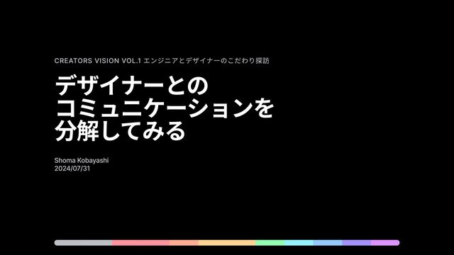 Creators Vision vol.1 エンジニアとデザイナーのこだわり探訪 デザイナーとの コミュニケーションを 分解してみる Shoma Kobayashi 2024/07/31