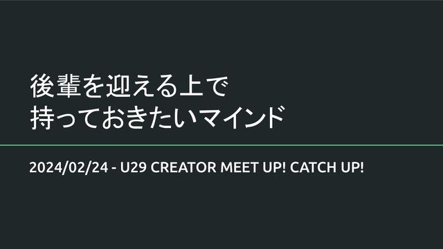 後輩を迎える上で 持っておきたいマインド 2024/02/24 - U29 CREATOR MEET UP! CATCH UP!
