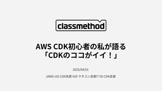 2025/04/01 JAWS-UG CDK⽀部 #20 マネコン⽀部!? VS CDK⽀部 AWS CDK初⼼者の私が語る 「CDKのココがイイ!」
