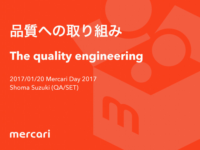 ࣭ͷऔΓΈ The quality engineering 2017/01/20 Mercari Day 2017 Shoma Suzuki