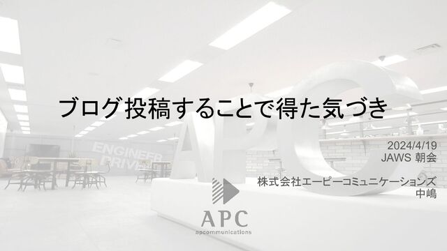 ブログ投稿することで得た気づき 2024/4/19 JAWS 朝会 株式会社エーピーコミュニケーションズ 中嶋