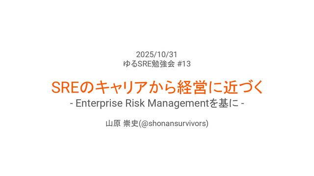 2025/10/31 ゆるSRE勉強会 #13 SREのキャリアから経営に近づく - Enterprise Risk Managementを基に - 山原