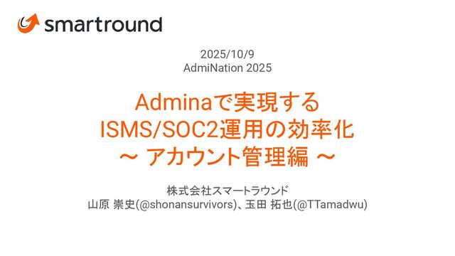 2025/10/9 AdmiNation 2025 Adminaで実現する ISMS/SOC2運用の効率化 〜 アカウント管理編 〜 株式会社スマートラウンド 山原