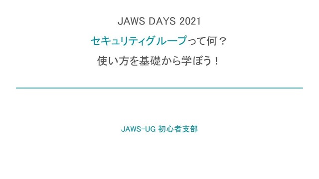 2. ハンズオン用環境の構成図の解説 3. 各ケースに沿ったセキュリティグループを作成、使用してみる a. IPアドレスを限定せず、Webサービスを利用させるケース b. 特定のIPアドレスに対してのみ、Webサービスを利用させるケース c. 特定のリソース同士を相互に通信可能とさせるケース 4. ハンズオン用環境を削除する 4