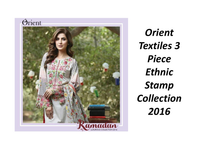 To keep you cool in this summer season, Orient has made this collection with comfy fabric of Lawn and introduced another variety of fabulous dresses in Orient Textiles Summer 3 Piece Ethnic Stamp Collection 2016. Designers of Orient has artistically embellished these dresses with striking embroideries, shirts of this collection has adorned with handmade embroidered work, while the dupattas of this collection has enriched with zari, these embroideries give a fancy look to every dress of Orient Summer 3 Piece Ethnic Stamp Collection 2016. For more information, visit us at www.shopatorient.com/3-piece-ethnic-collection