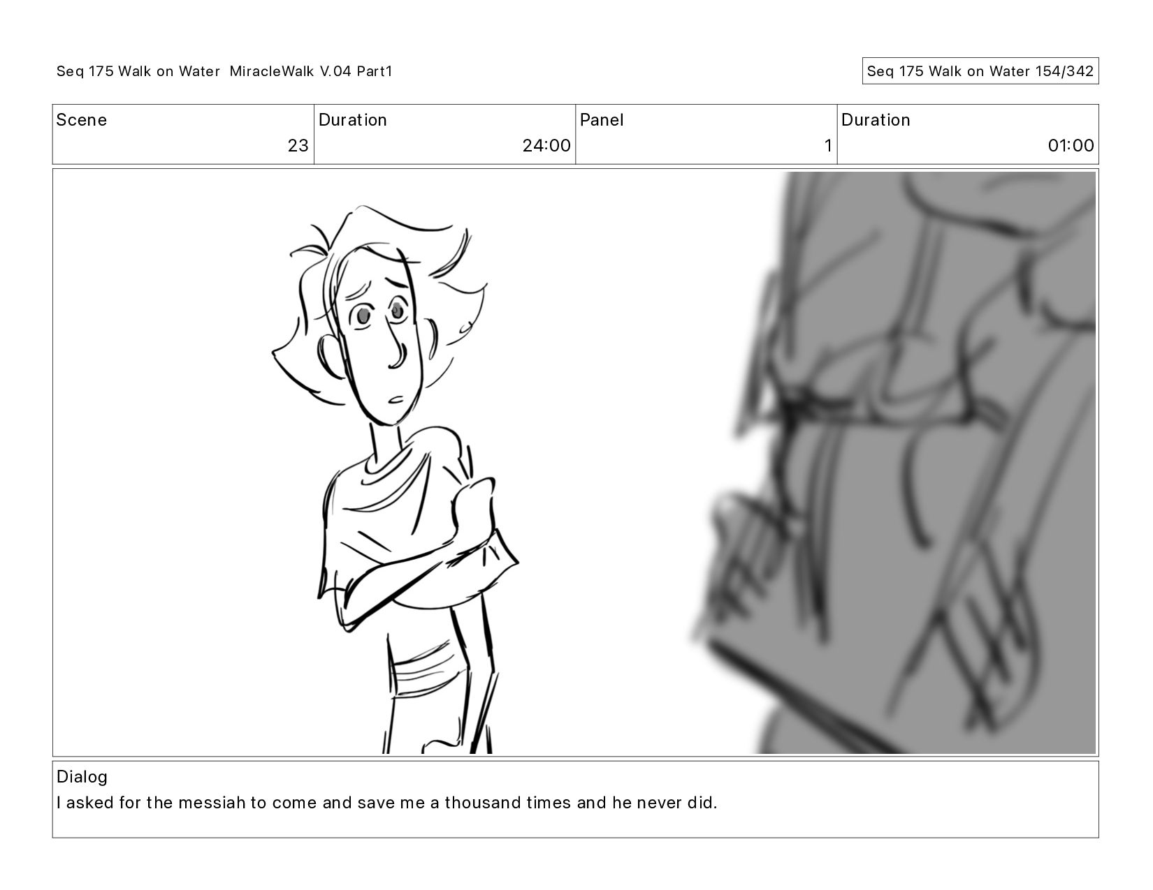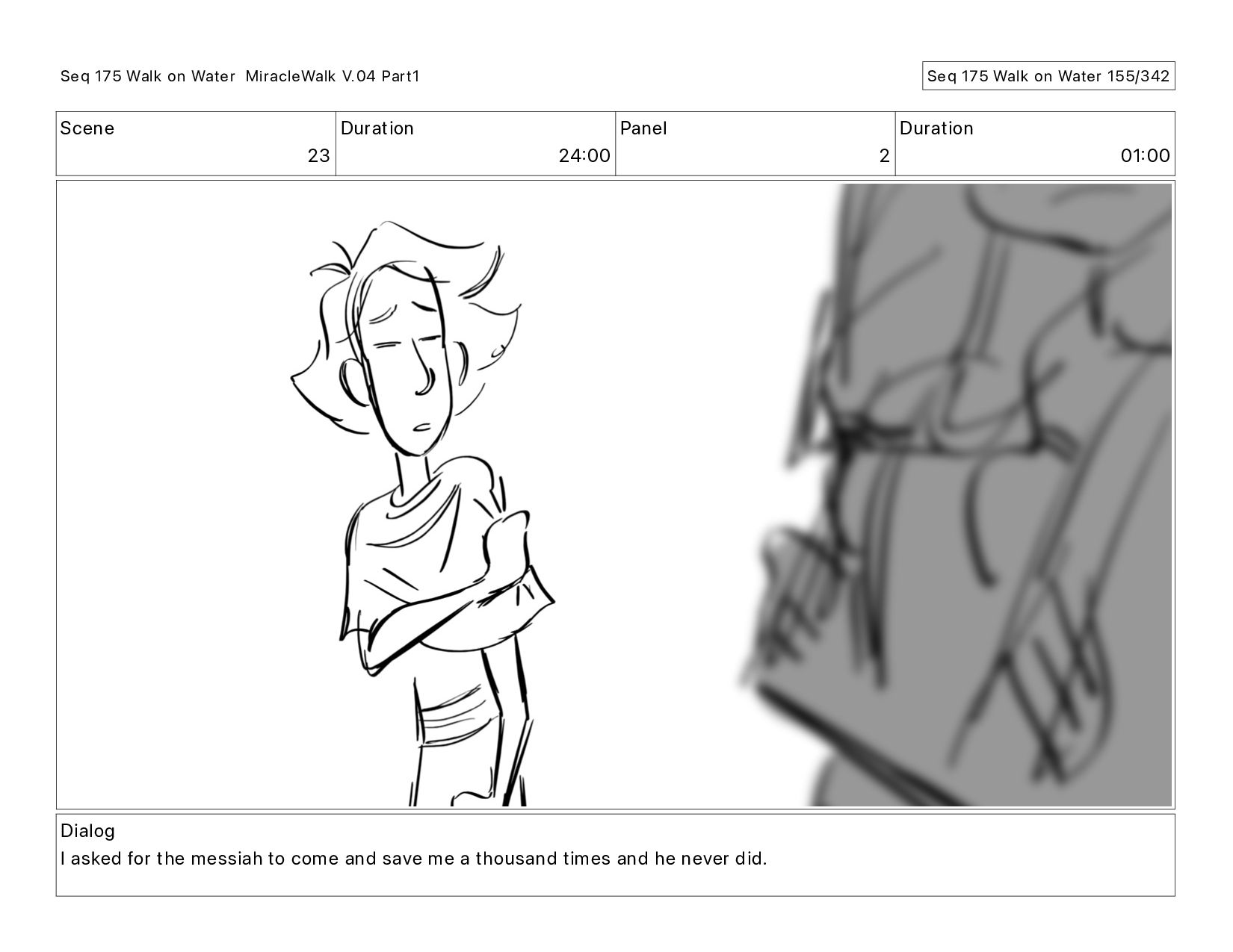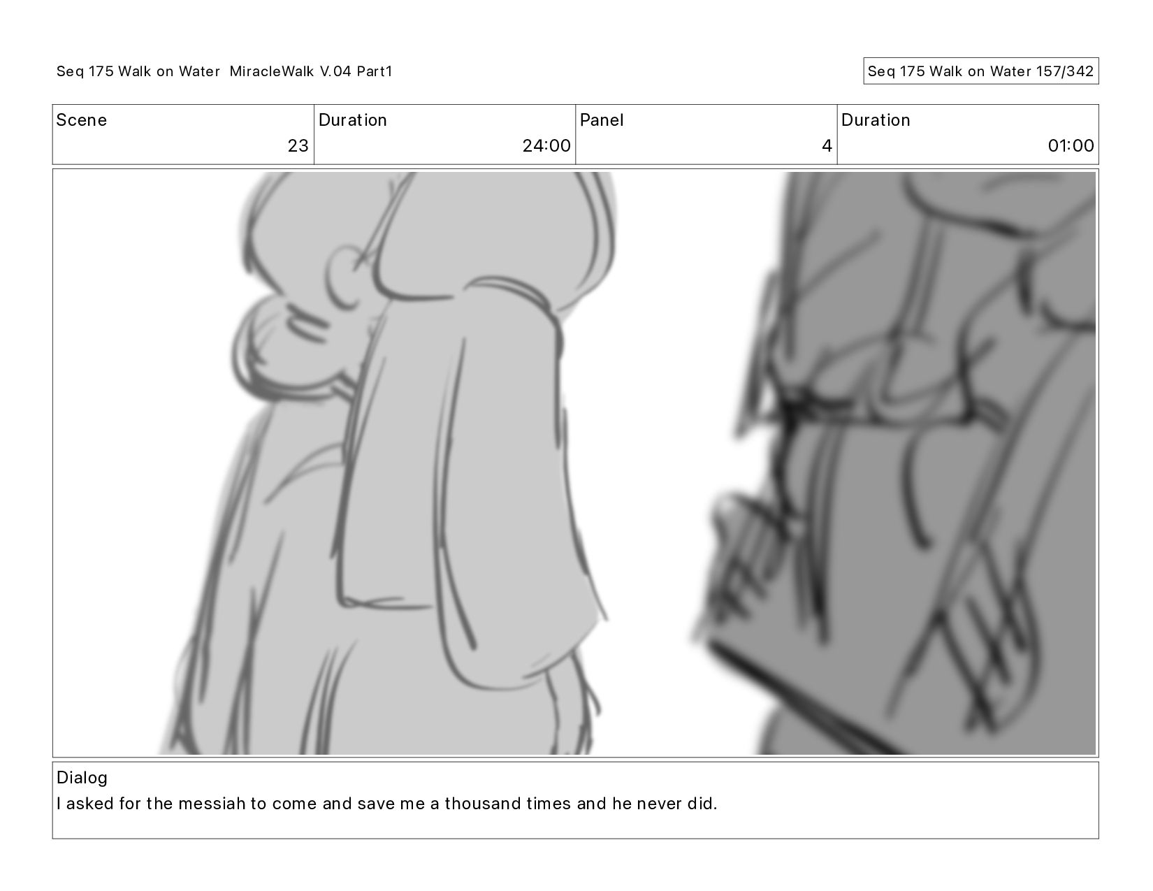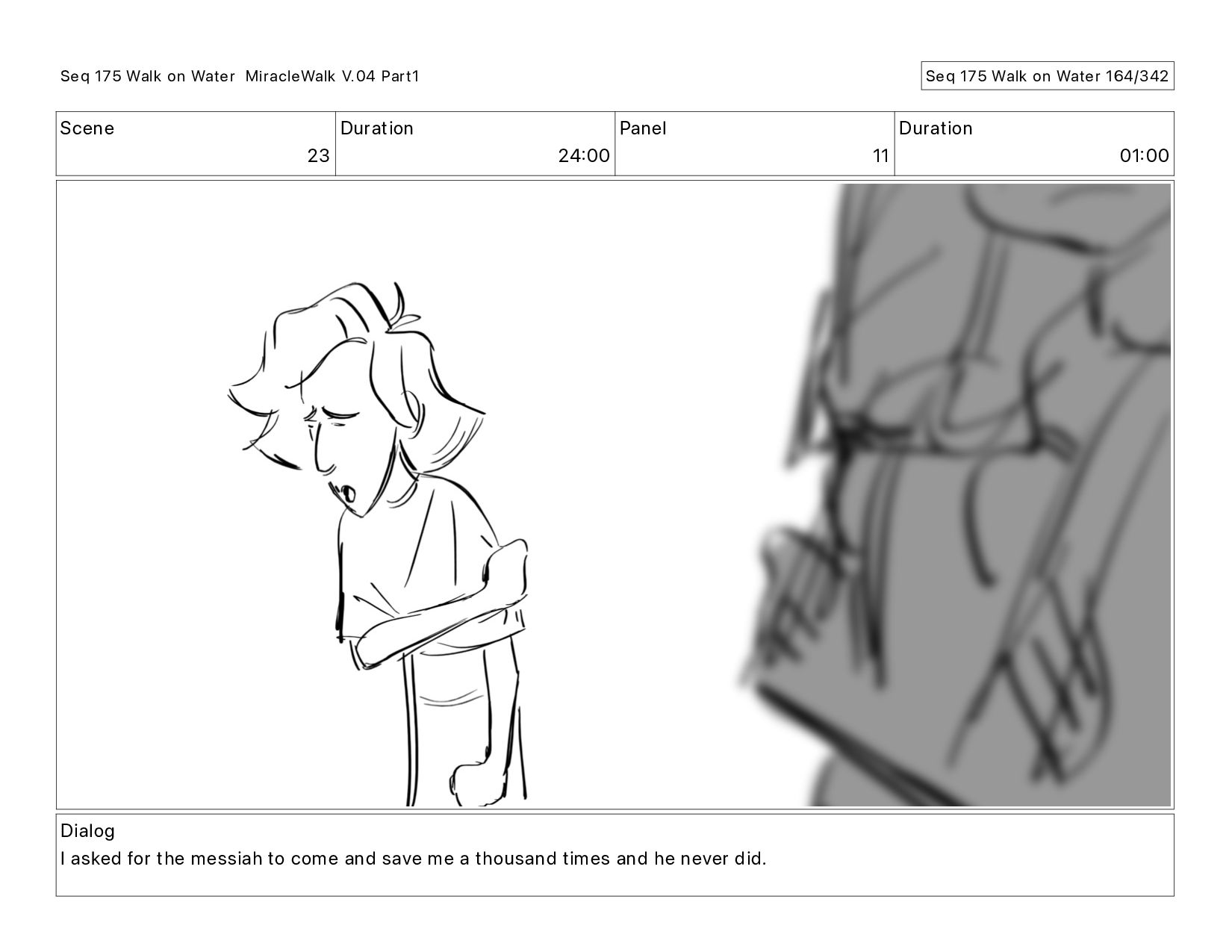 Dialog I asked for the messiah to come and save me a thousand times and he never did. Seq 175 Walk on Water MiracleWalk V.04 Part1 Seq 175 Walk on Water 154/342