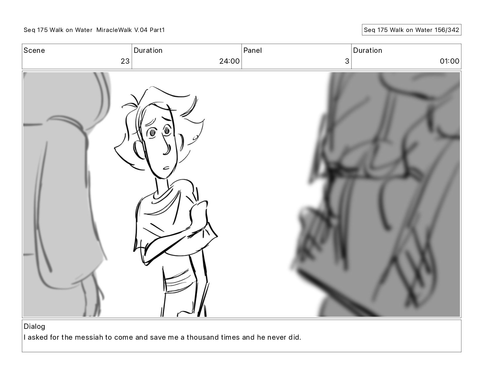 Dialog I asked for the messiah to come and save me a thousand times and he never did. Seq 175 Walk on Water MiracleWalk V.04 Part1 Seq 175 Walk on Water 156/342