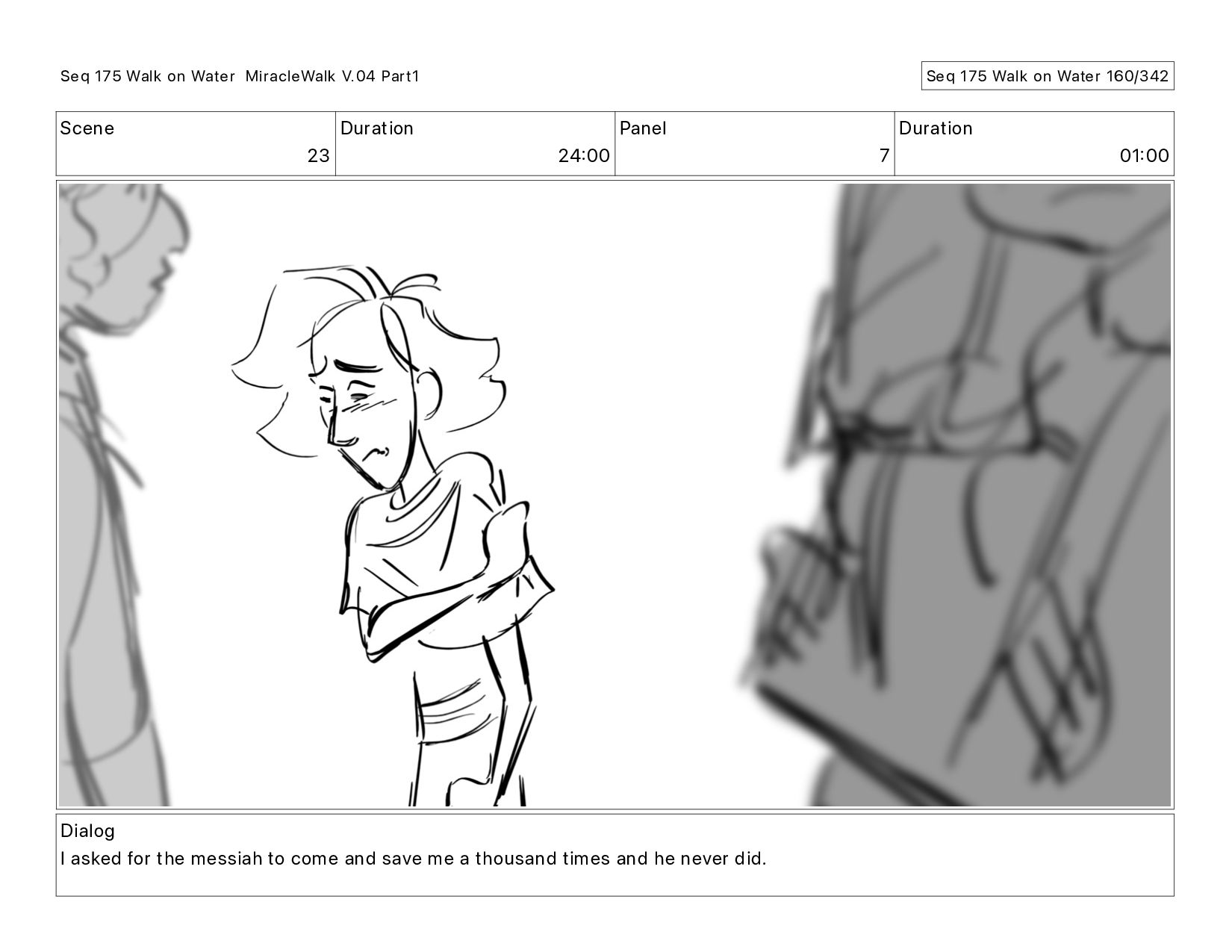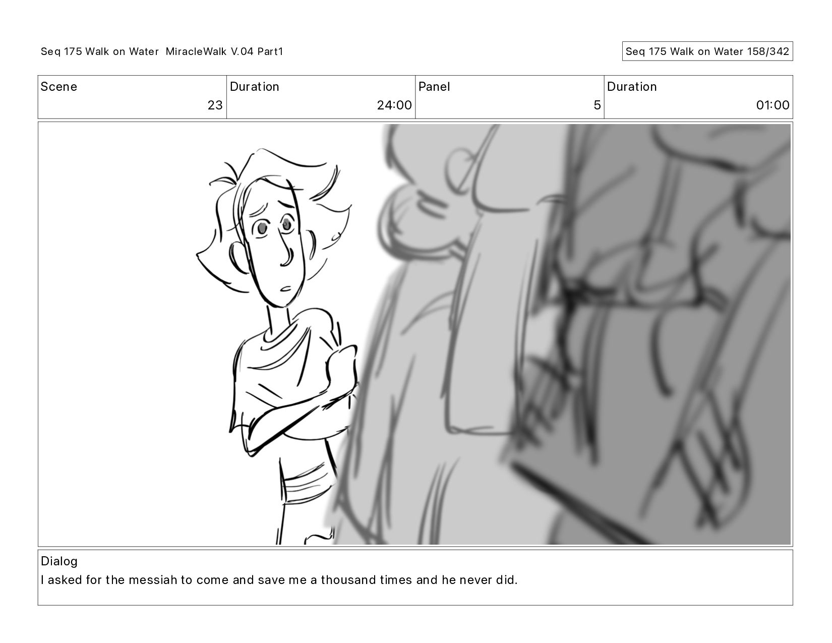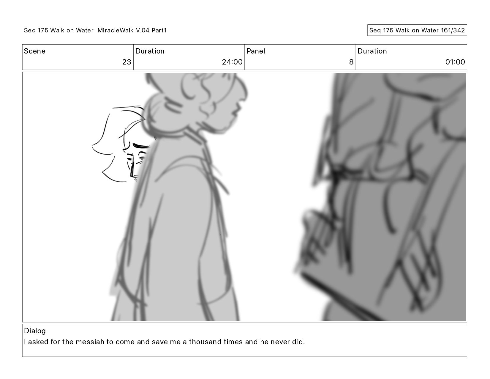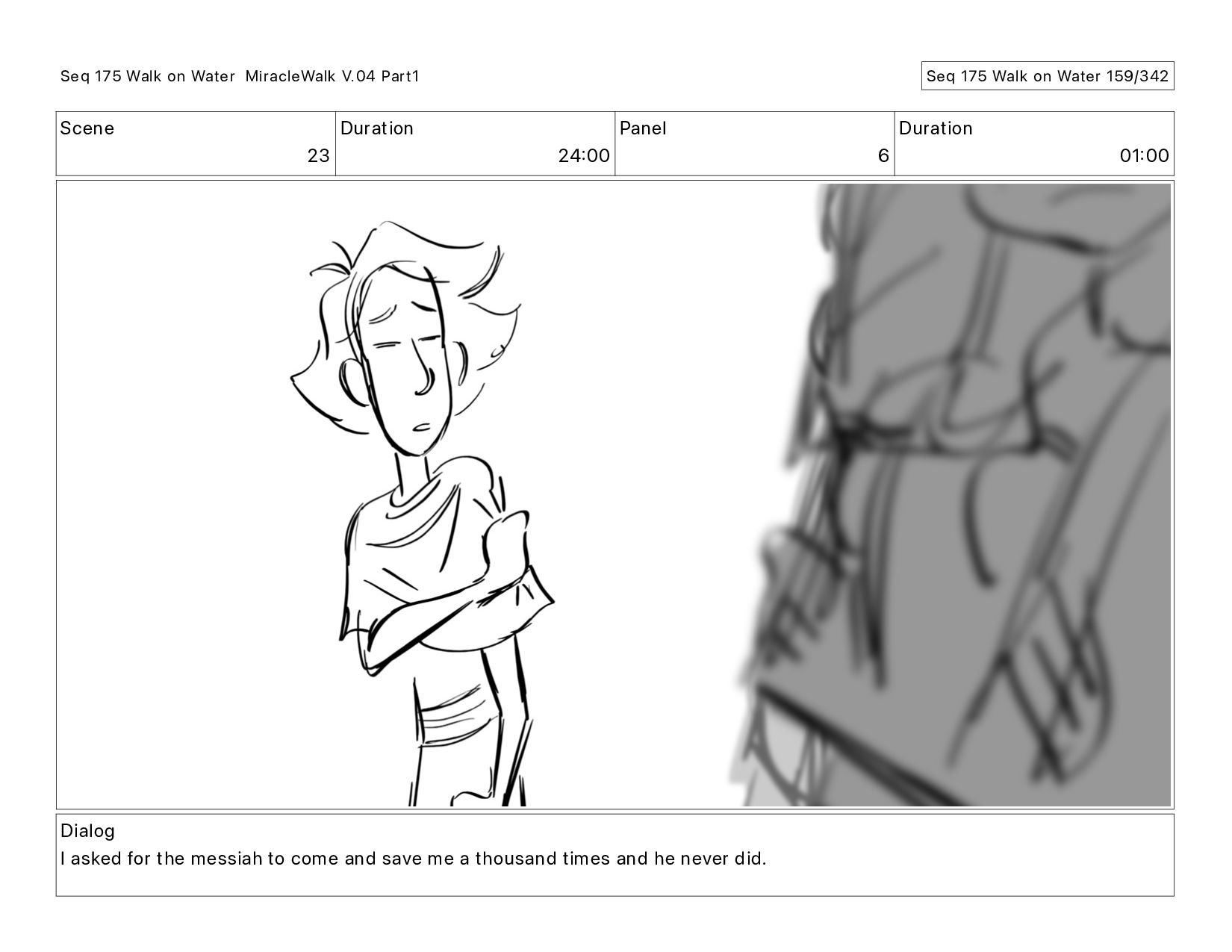 Dialog I asked for the messiah to come and save me a thousand times and he never did. Seq 175 Walk on Water MiracleWalk V.04 Part1 Seq 175 Walk on Water 158/342