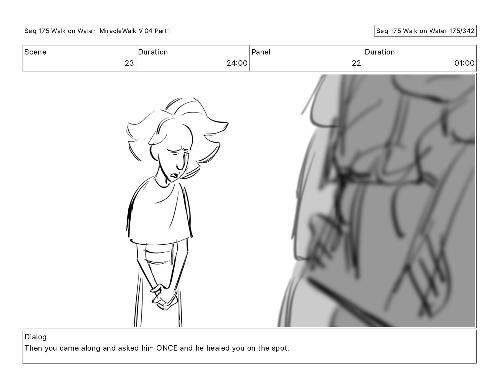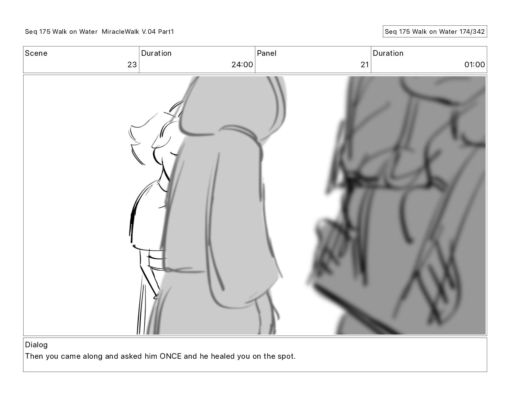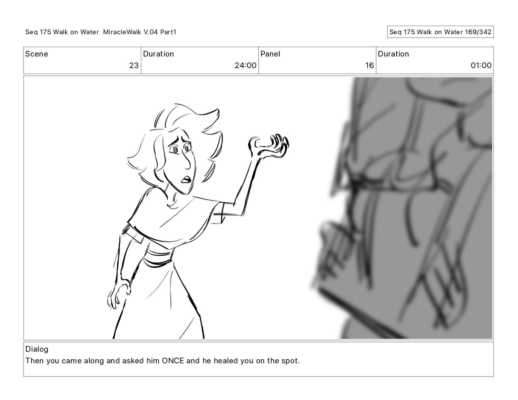 Dialog Then you came along and asked him ONCE and he healed you on the spot. Seq 175 Walk on Water MiracleWalk V.04 Part1 Seq 175 Walk on Water 174/342