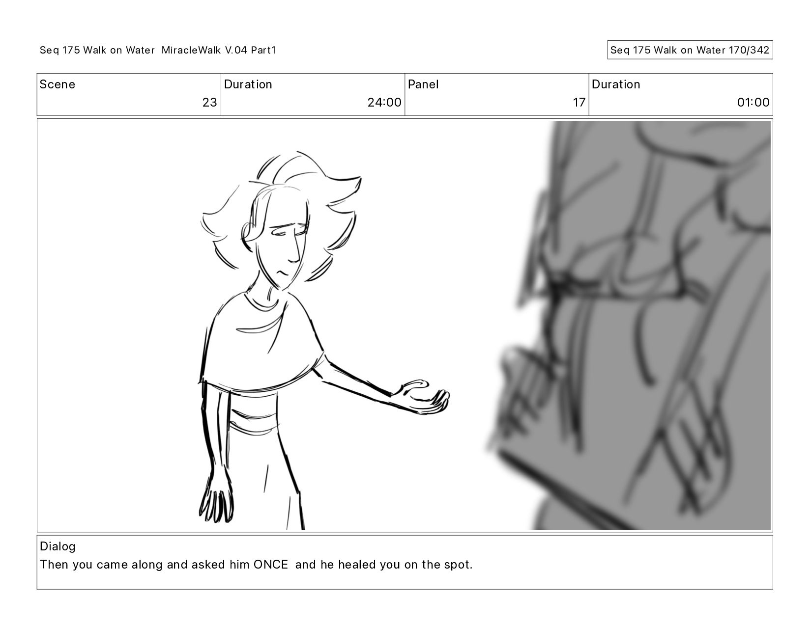 Dialog Then you came along and asked him ONCE and he healed you on the spot. Seq 175 Walk on Water MiracleWalk V.04 Part1 Seq 175 Walk on Water 171/342