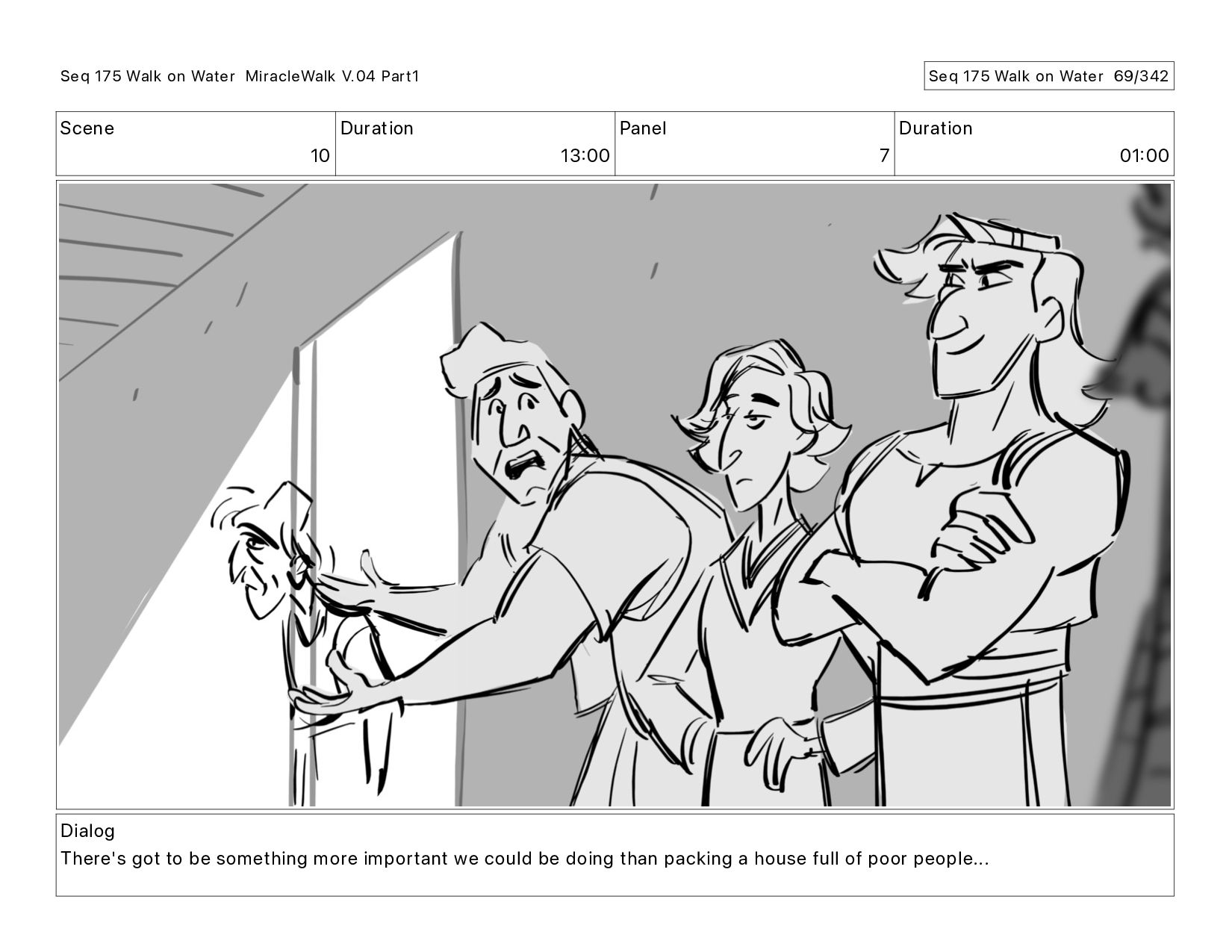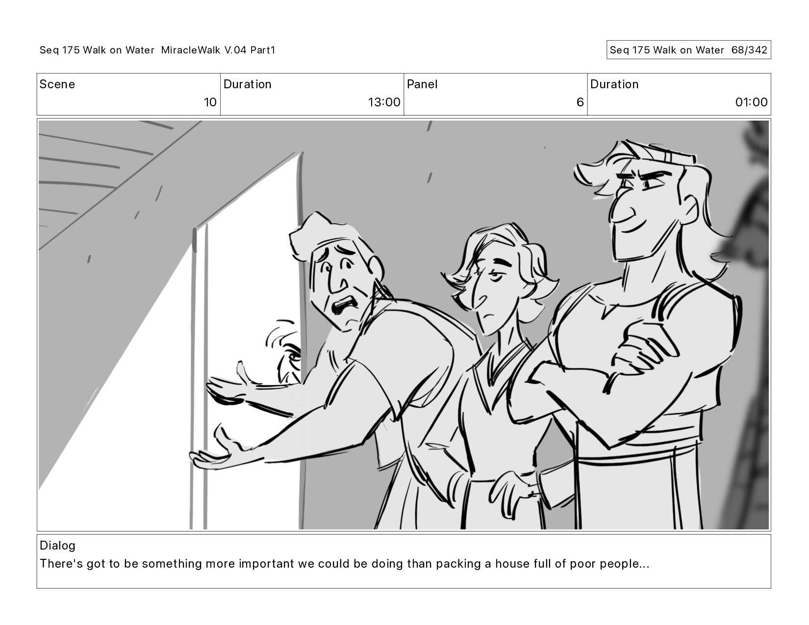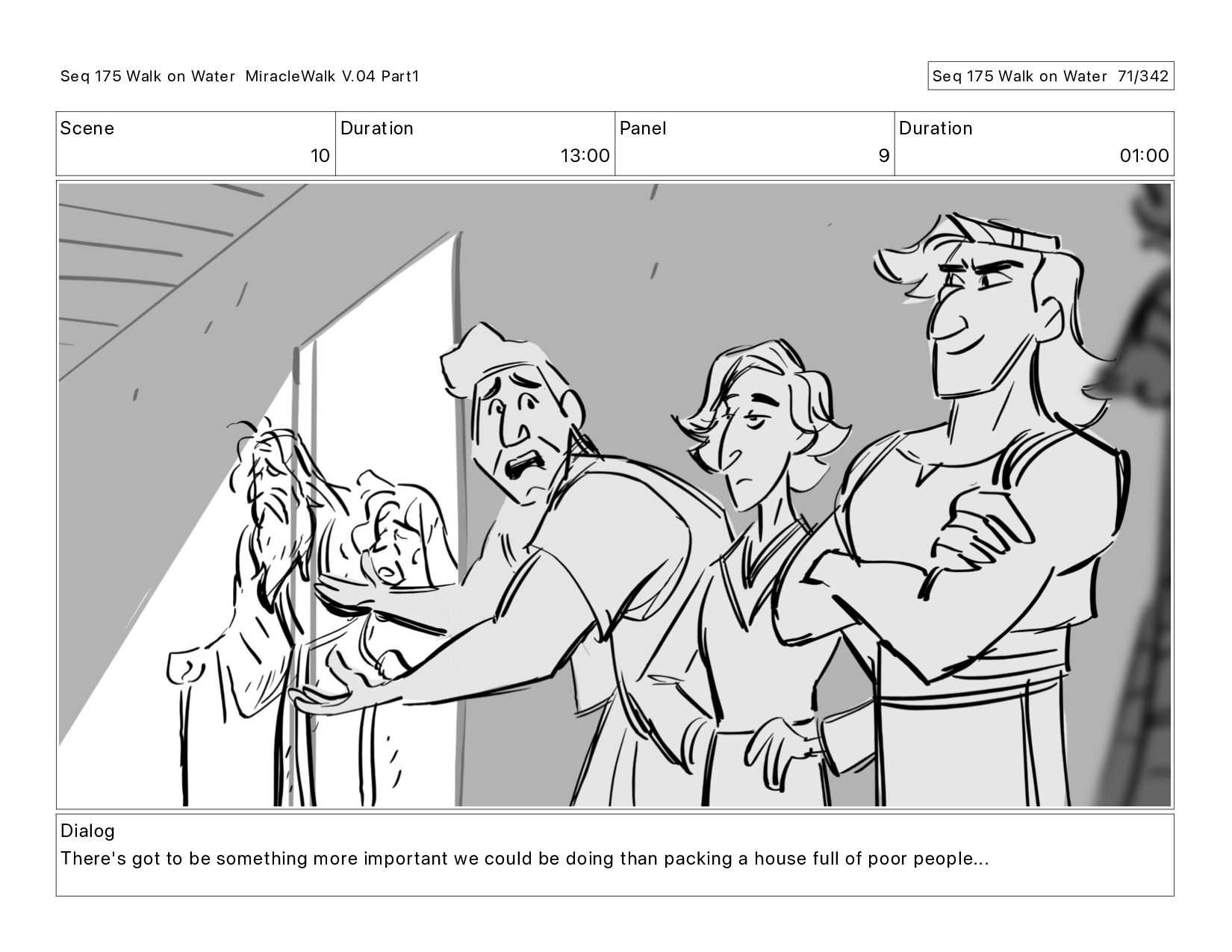 Dialog There's got to be something more important we could be doing than packing a house full of poor people... Seq 175 Walk on Water MiracleWalk V.04 Part1 Seq 175 Walk on Water 73/342