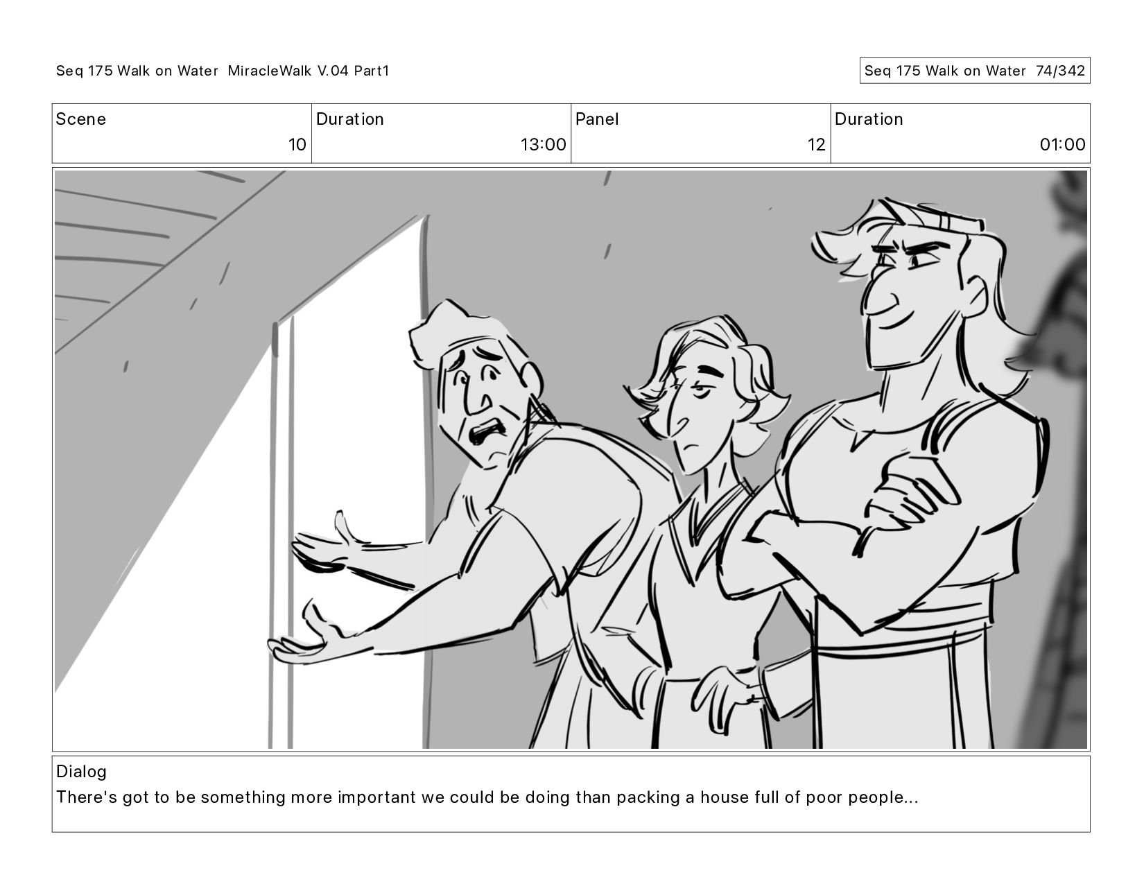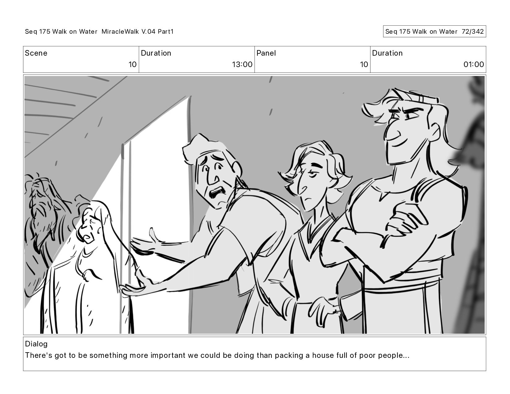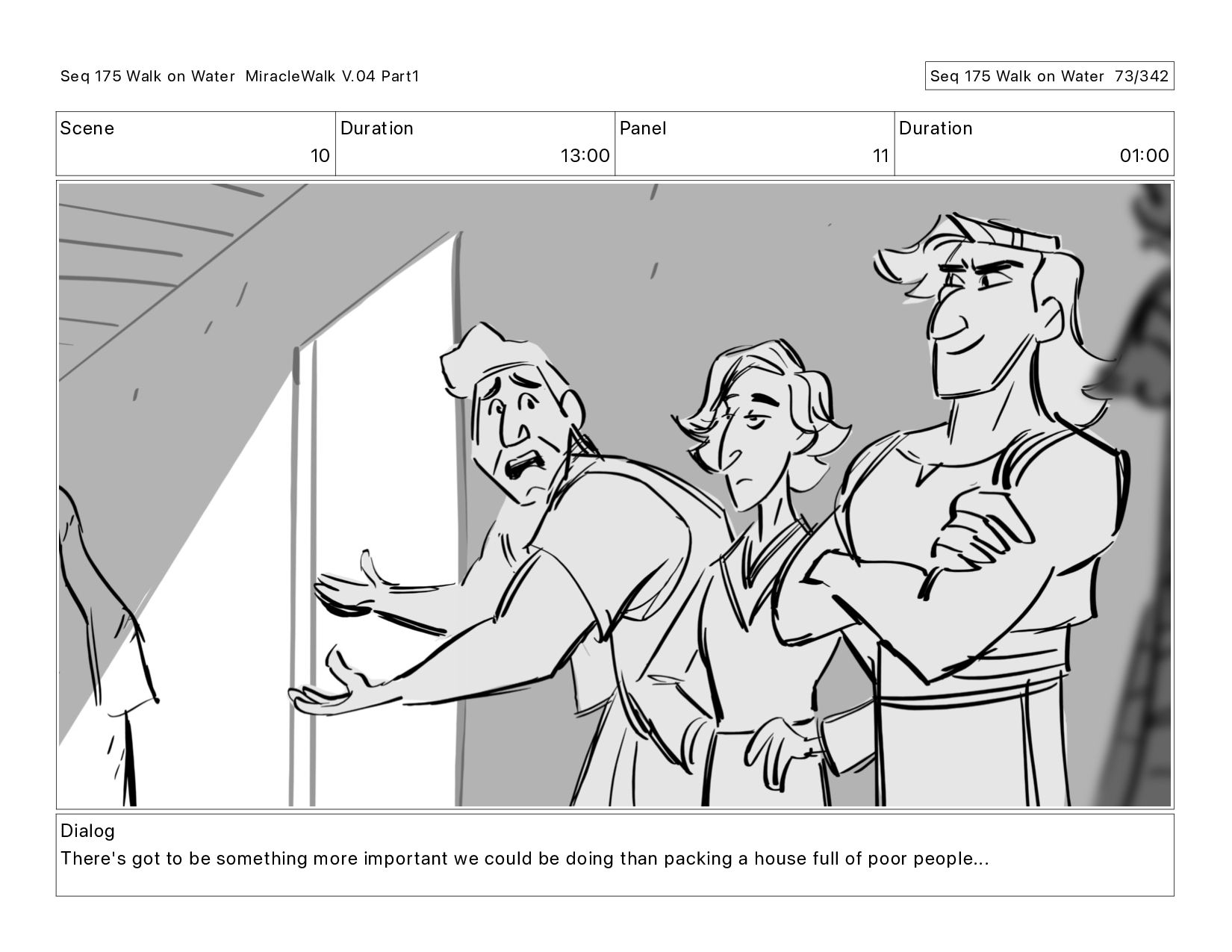Dialog There's got to be something more important we could be doing than packing a house full of poor people... Seq 175 Walk on Water MiracleWalk V.04 Part1 Seq 175 Walk on Water 73/342