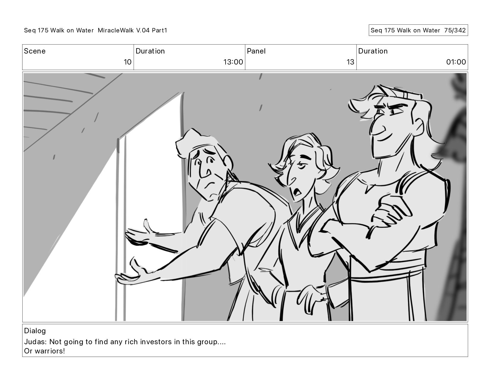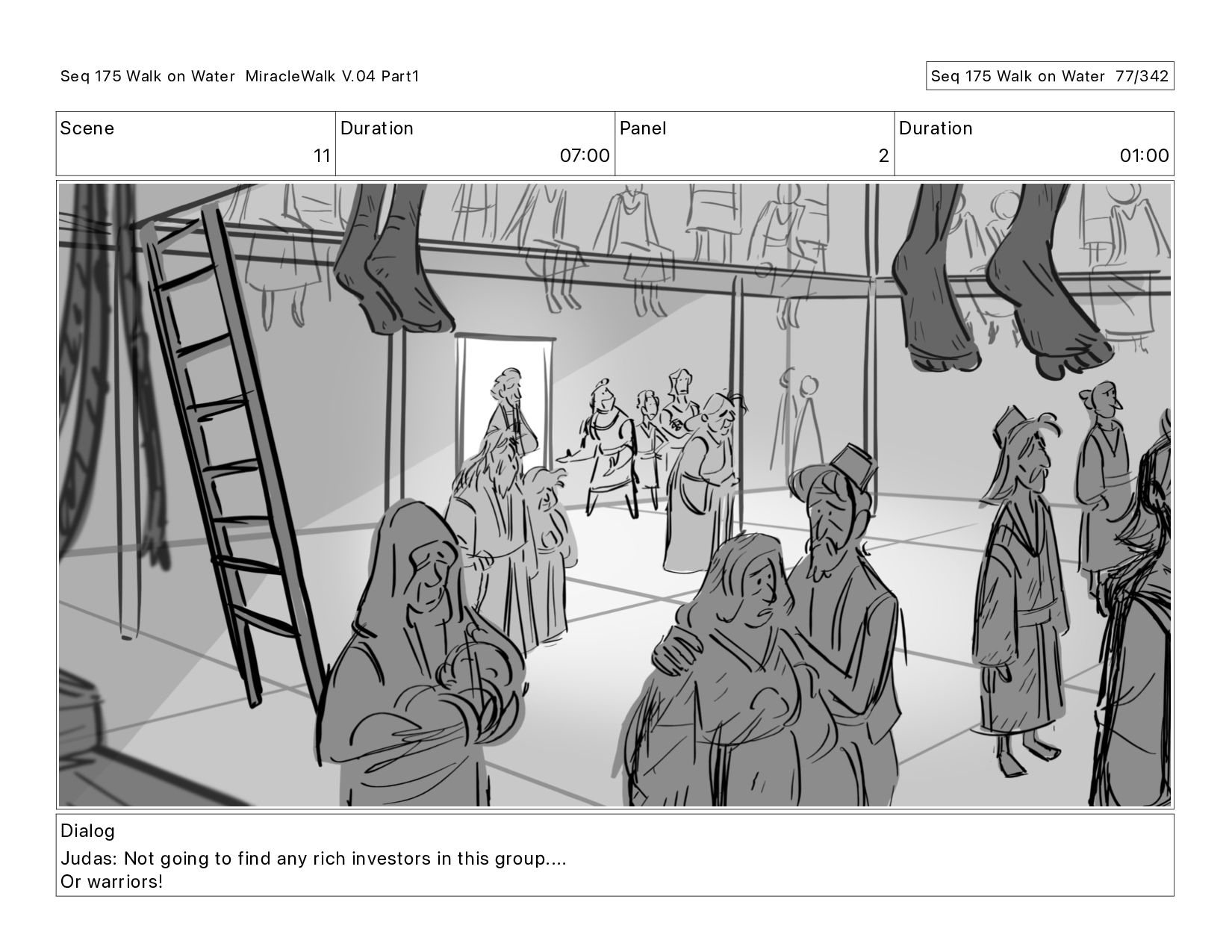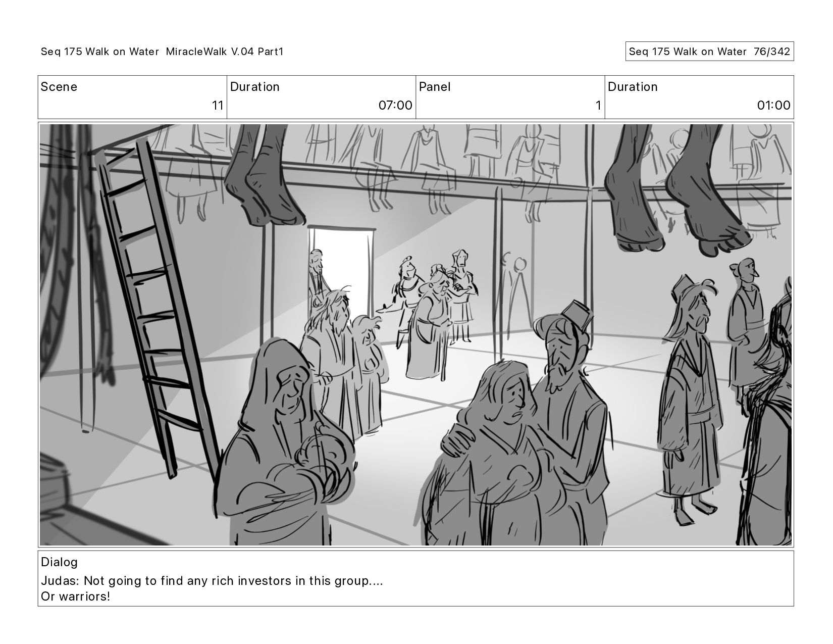 Dialog Judas: Not going to find any rich investors in this group.... Or warriors! Seq 175 Walk on Water MiracleWalk V.04 Part1 Seq 175 Walk on Water 75/342