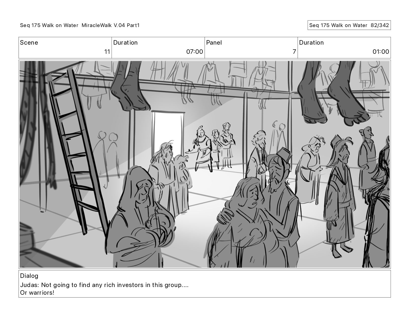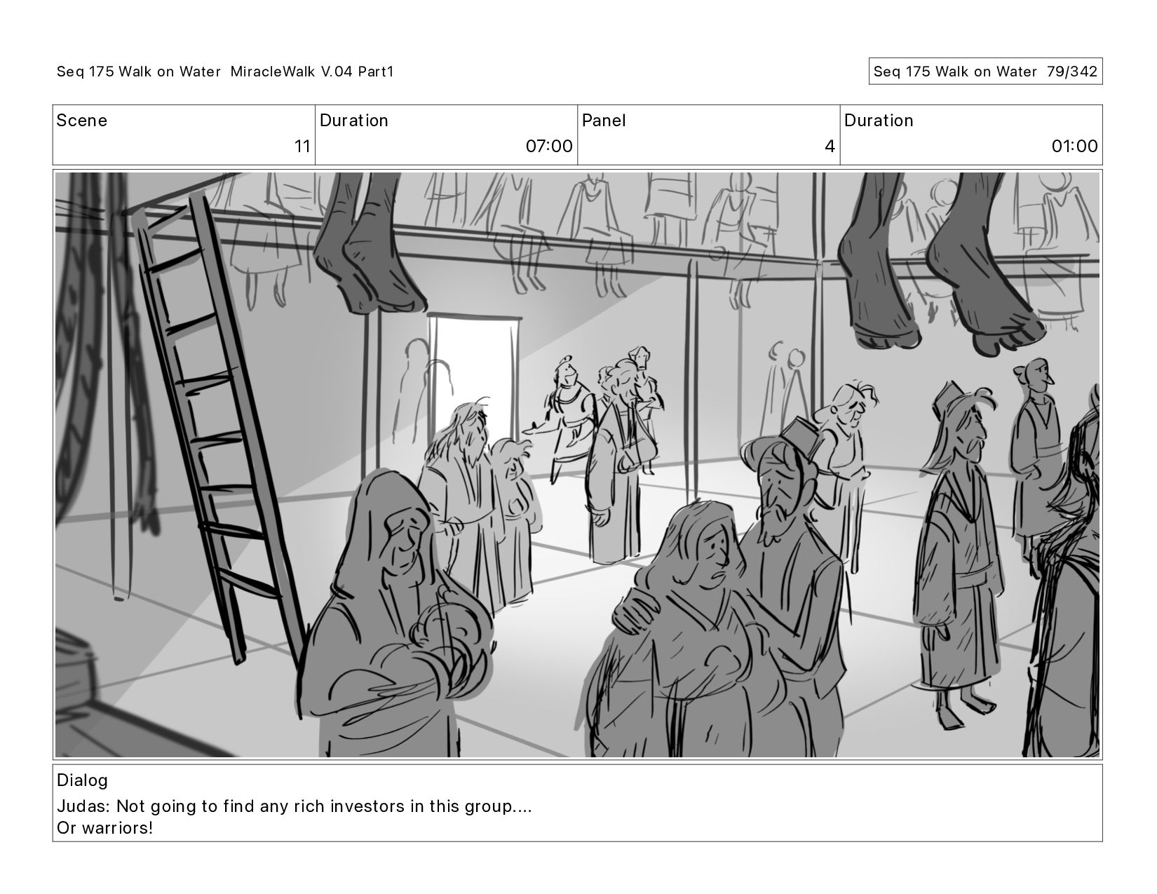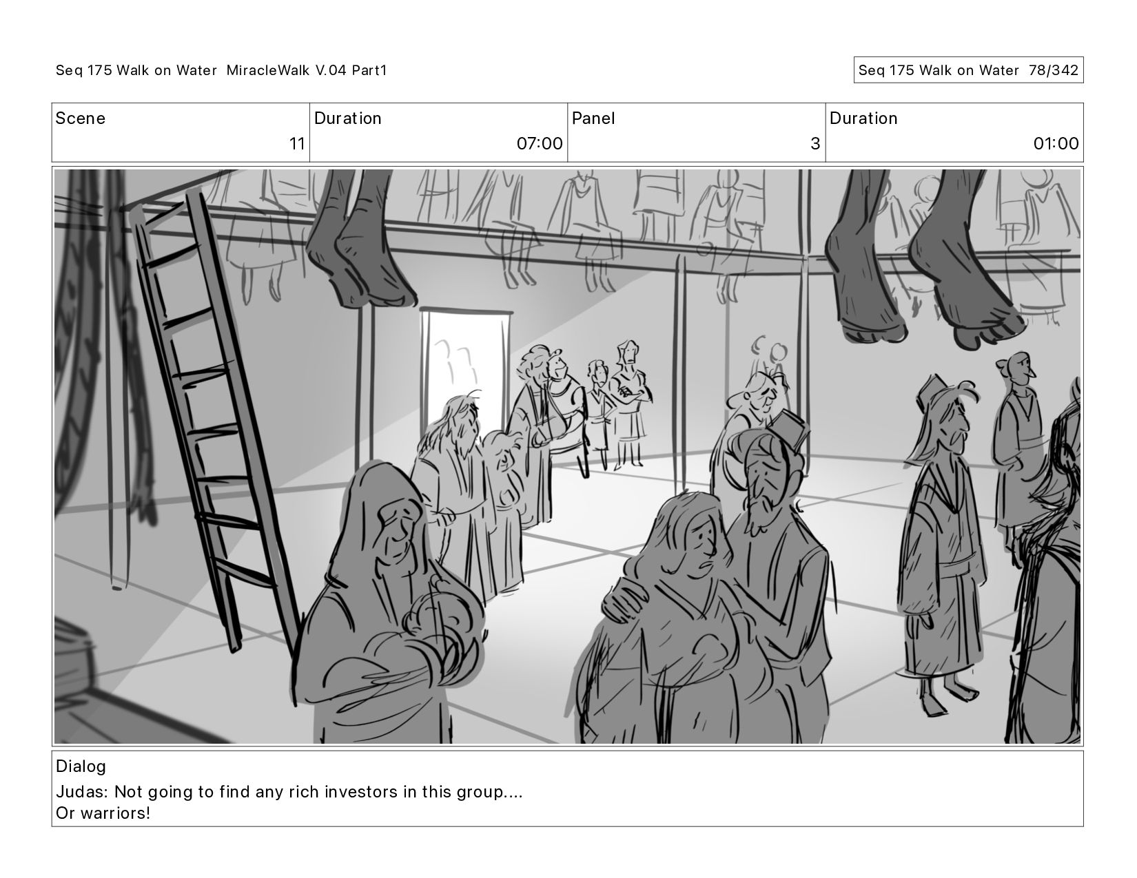 Dialog Judas: Not going to find any rich investors in this group.... Or warriors! Seq 175 Walk on Water MiracleWalk V.04 Part1 Seq 175 Walk on Water 75/342