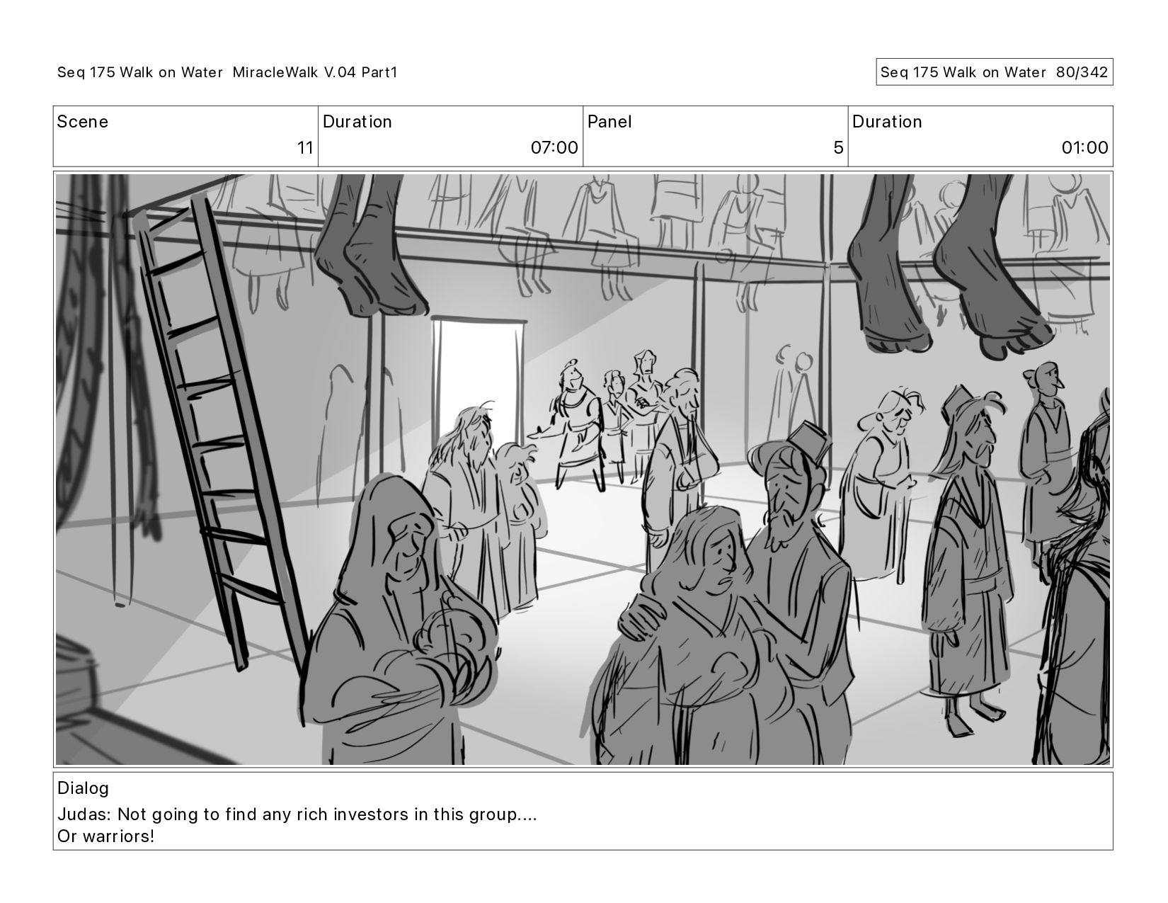 Dialog Judas: Not going to find any rich investors in this group.... Or warriors! Seq 175 Walk on Water MiracleWalk V.04 Part1 Seq 175 Walk on Water 80/342