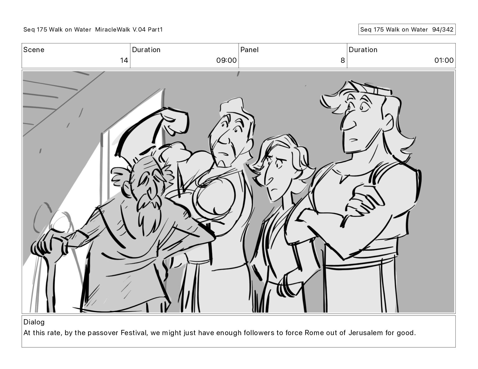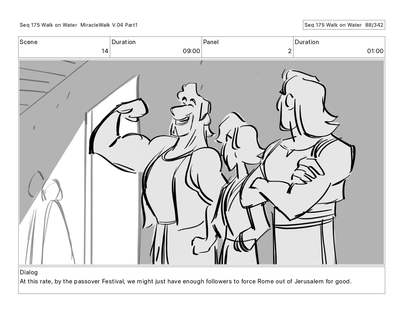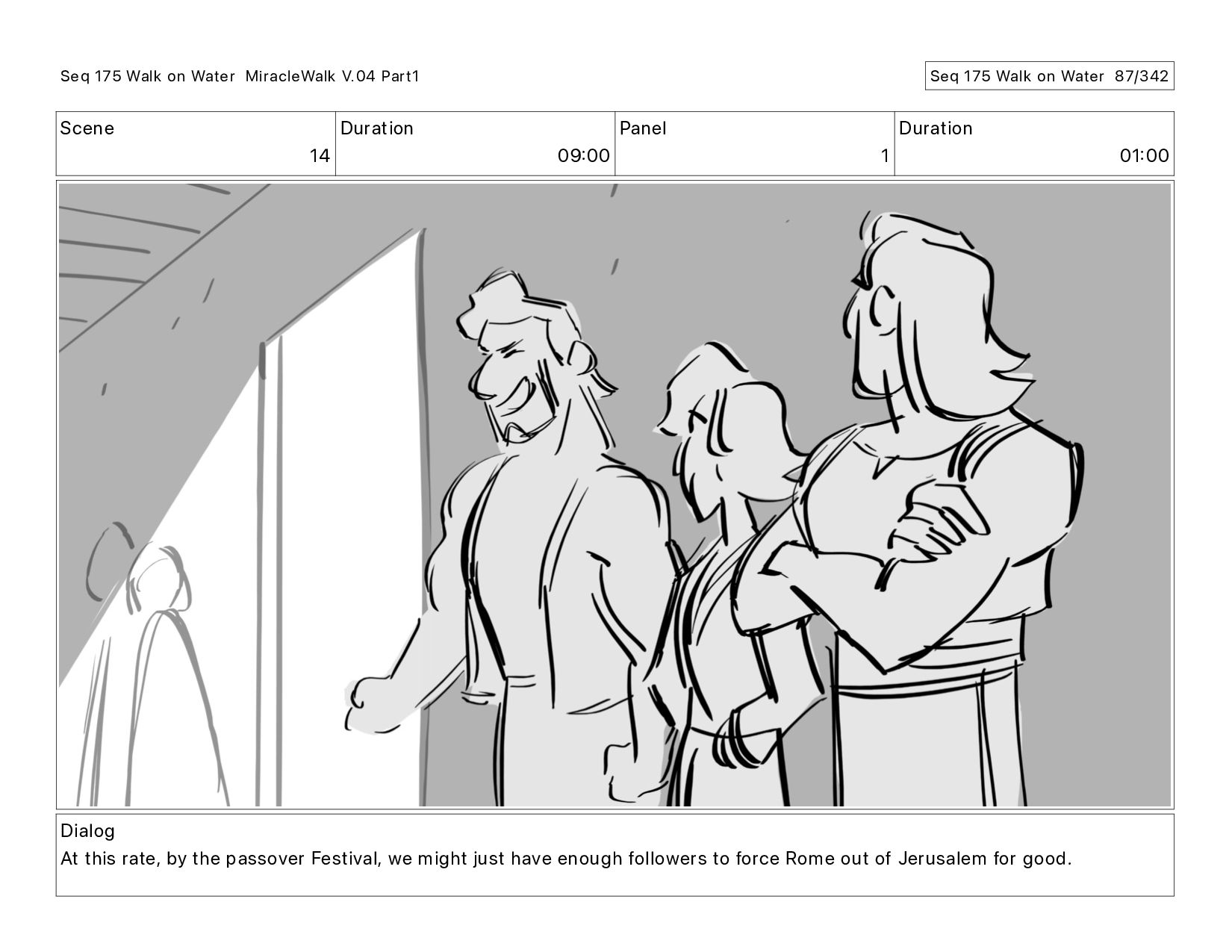 Dialog At this rate, by the passover Festival, we might just have enough followers to force Rome out of Jerusalem for good. Seq 175 Walk on Water MiracleWalk V.04 Part1 Seq 175 Walk on Water 88/342