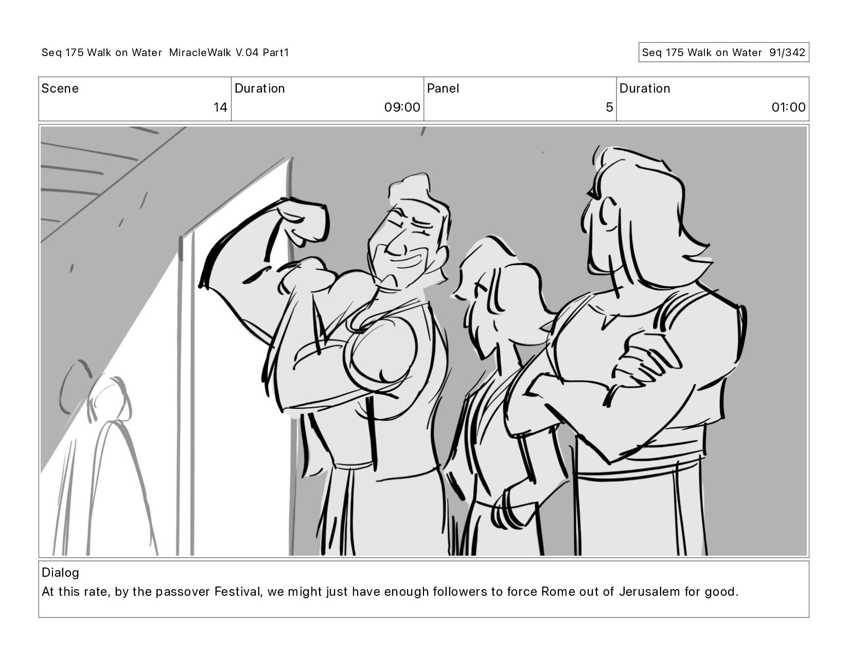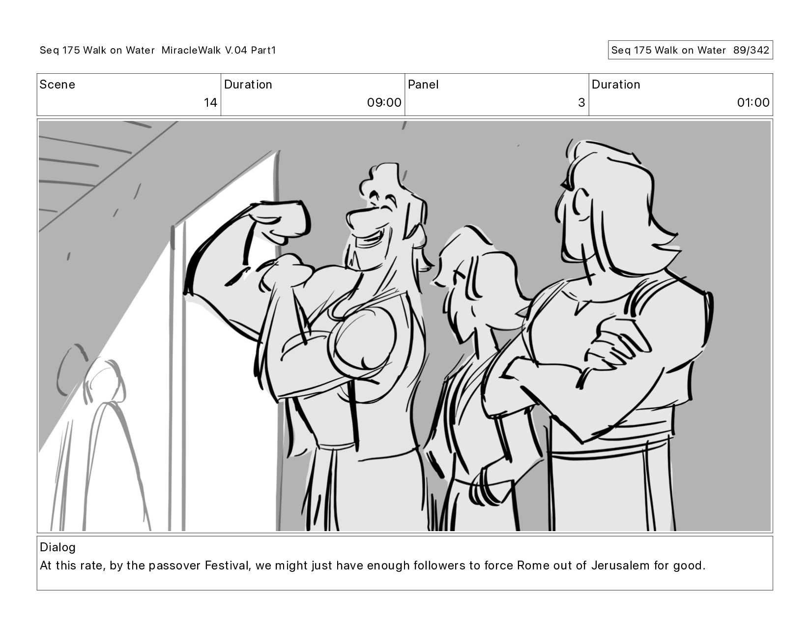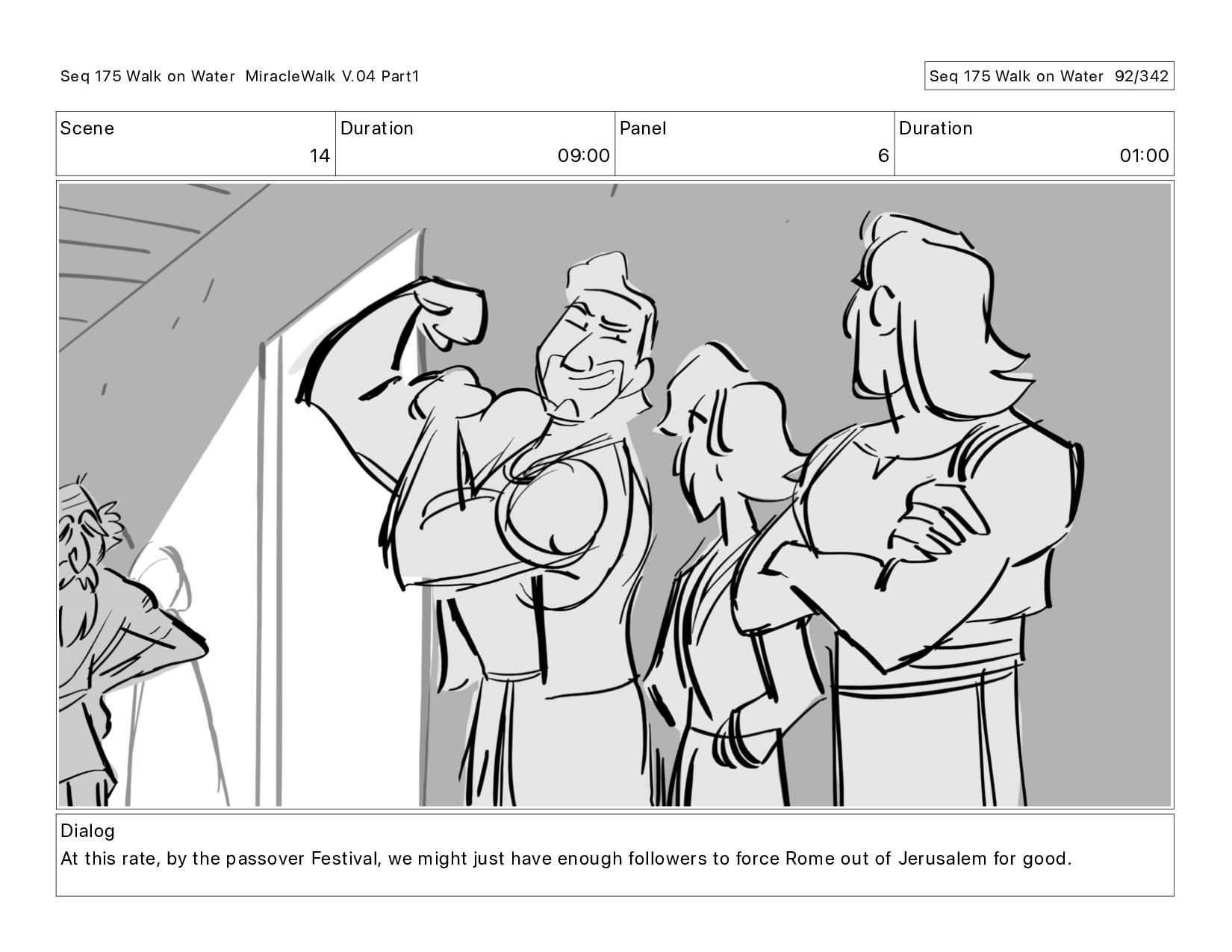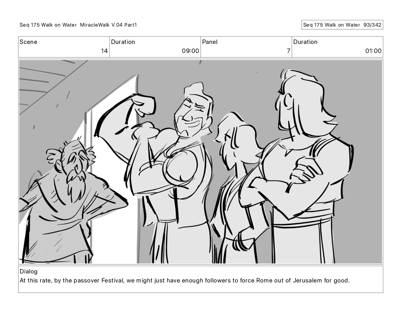 Dialog At this rate, by the passover Festival, we might just have enough followers to force Rome out of Jerusalem for good. Seq 175 Walk on Water MiracleWalk V.04 Part1 Seq 175 Walk on Water 89/342