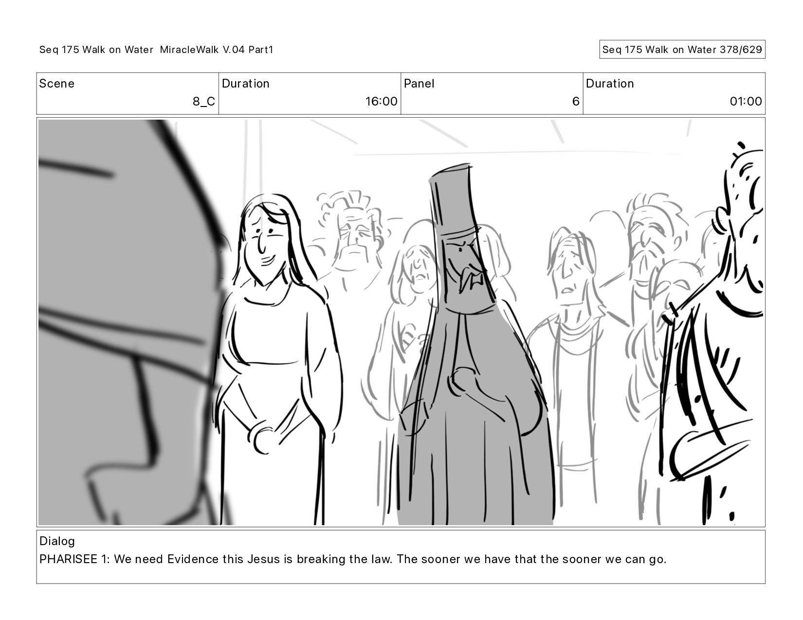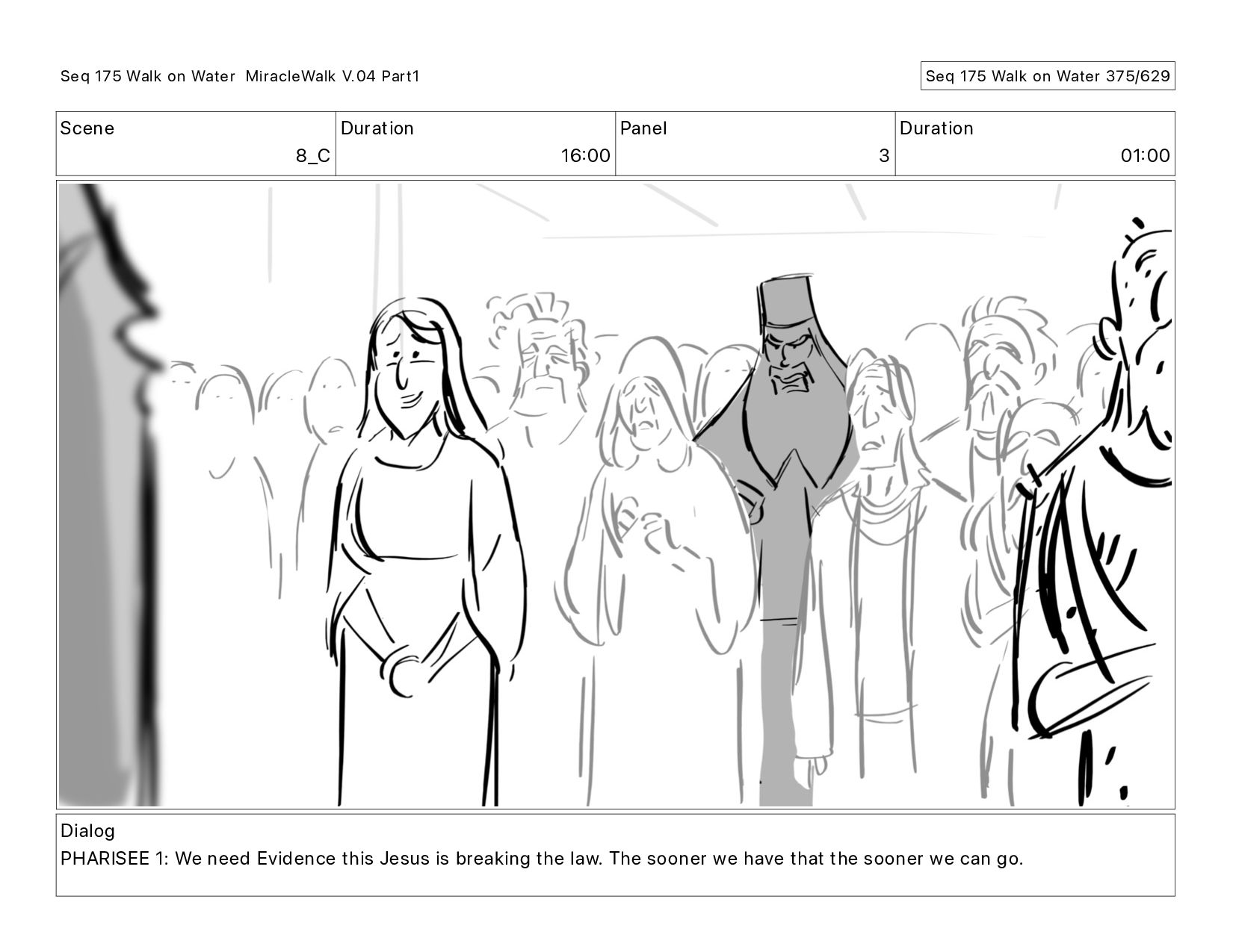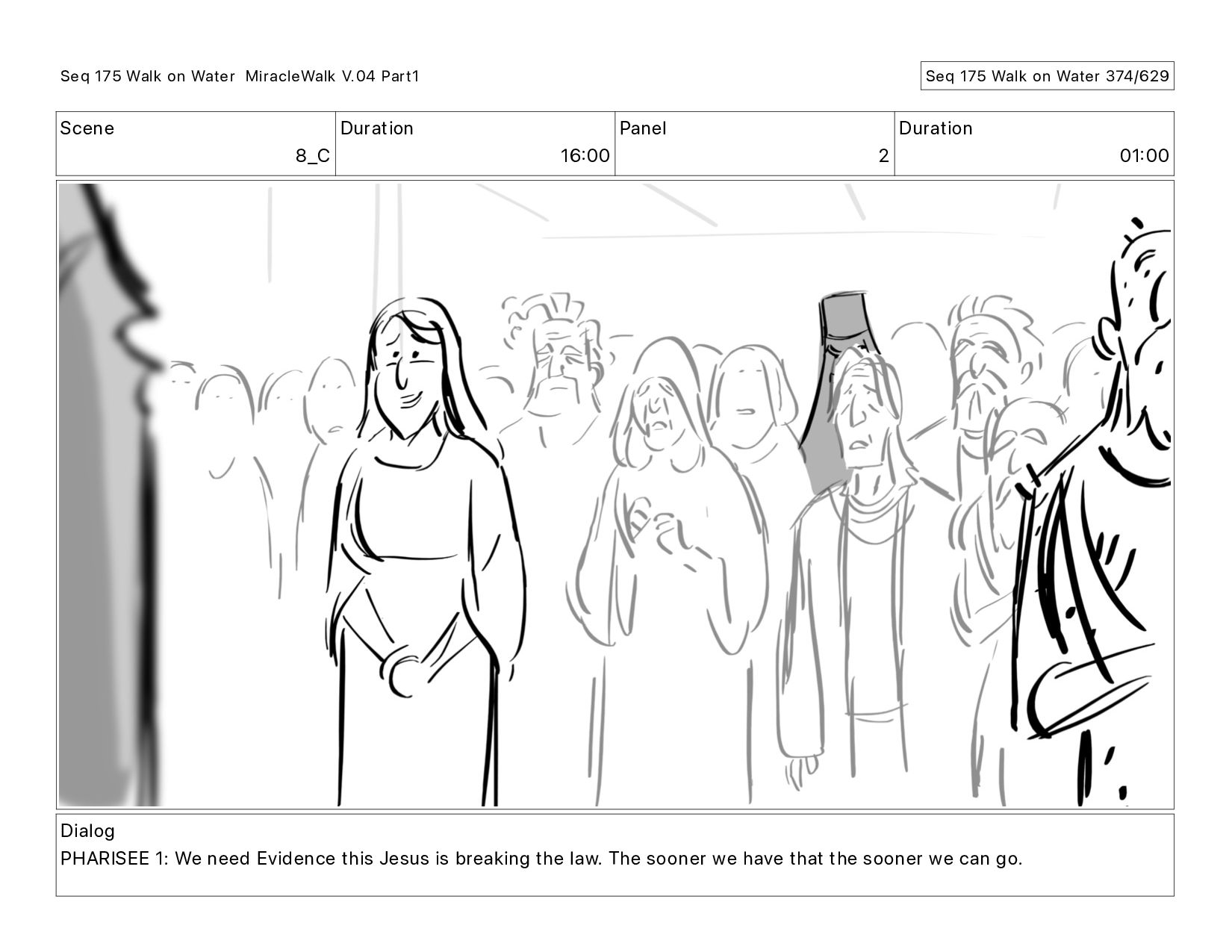 Dialog PHARISEE 1: We need Evidence this Jesus is breaking the law. The sooner we have that the sooner we can go. Seq 175 Walk on Water MiracleWalk V.04 Part1 Seq 175 Walk on Water 375/629
