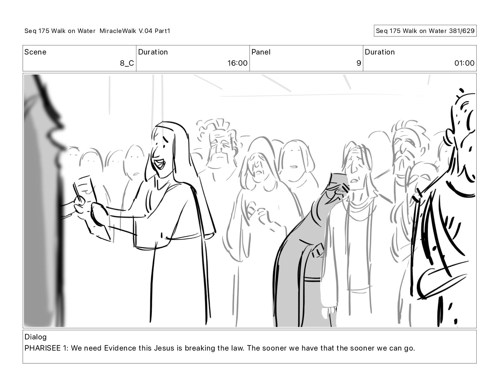 Dialog PHARISEE 1: We need Evidence this Jesus is breaking the law. The sooner we have that the sooner we can go. Seq 175 Walk on Water MiracleWalk V.04 Part1 Seq 175 Walk on Water 381/629
