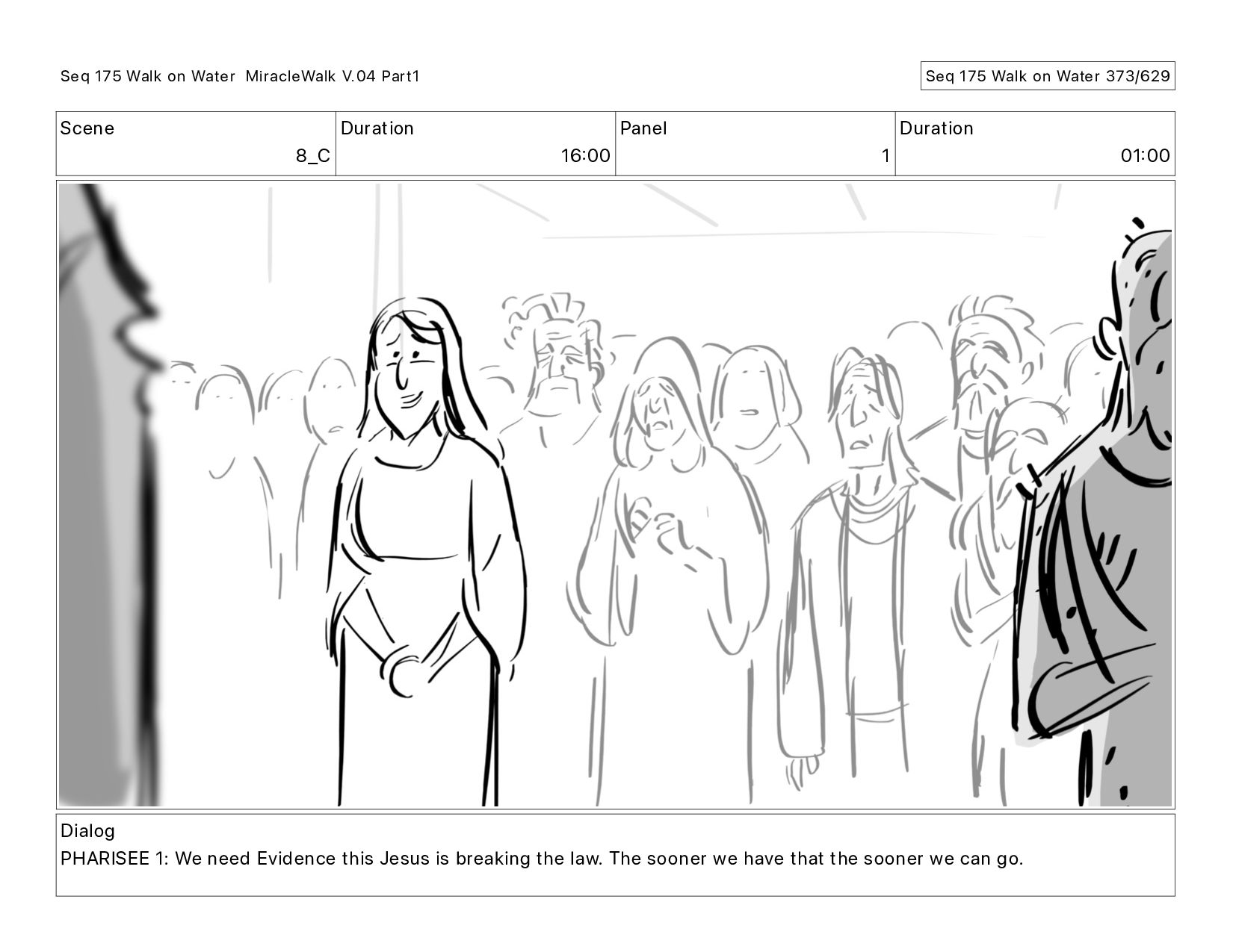 Dialog PHARISEE 1: We need Evidence this Jesus is breaking the law. The sooner we have that the sooner we can go. Seq 175 Walk on Water MiracleWalk V.04 Part1 Seq 175 Walk on Water 373/629