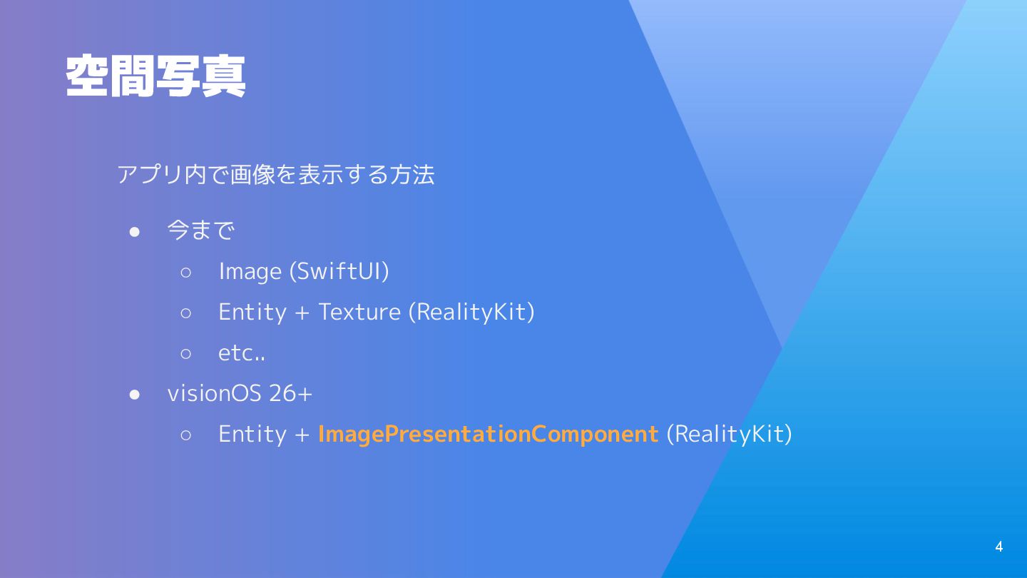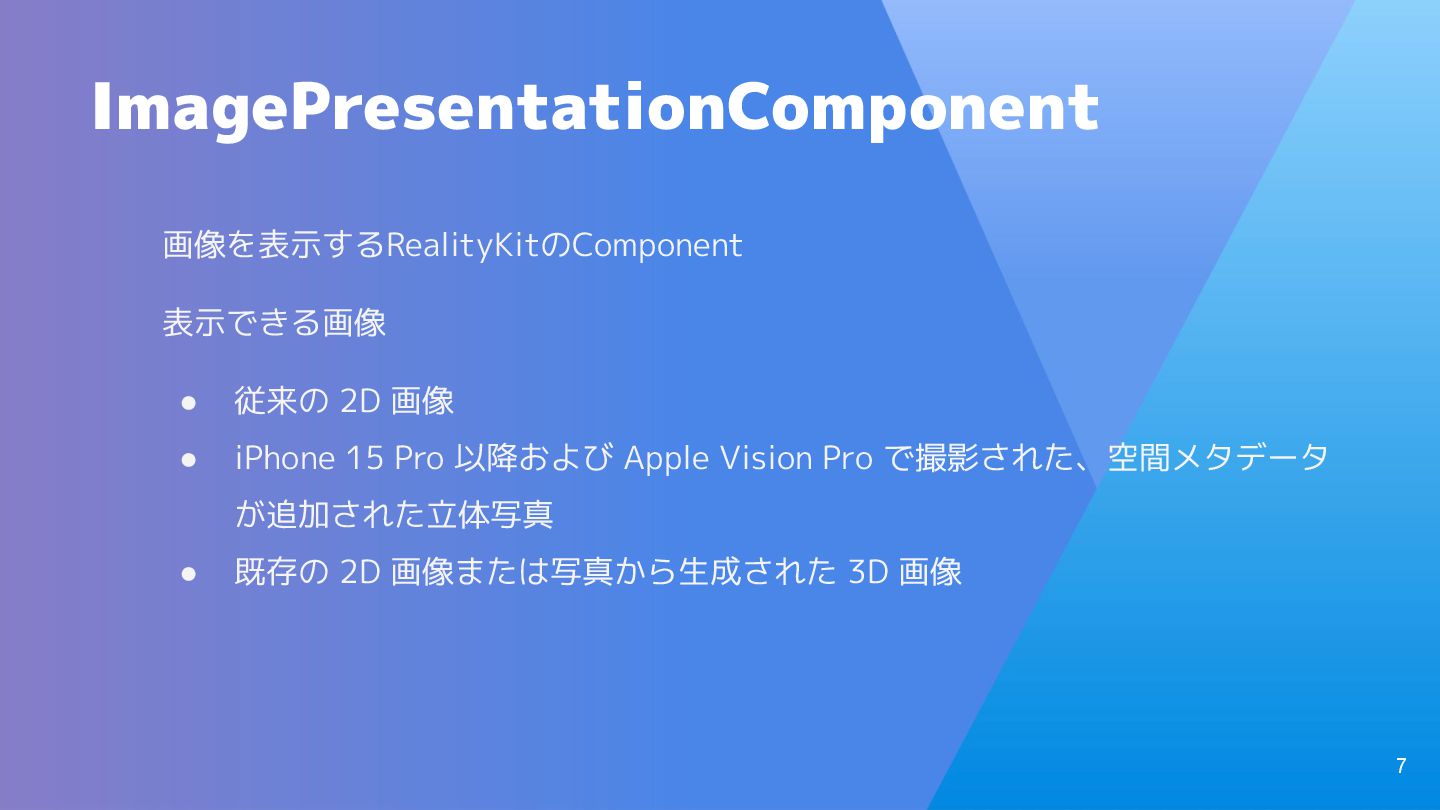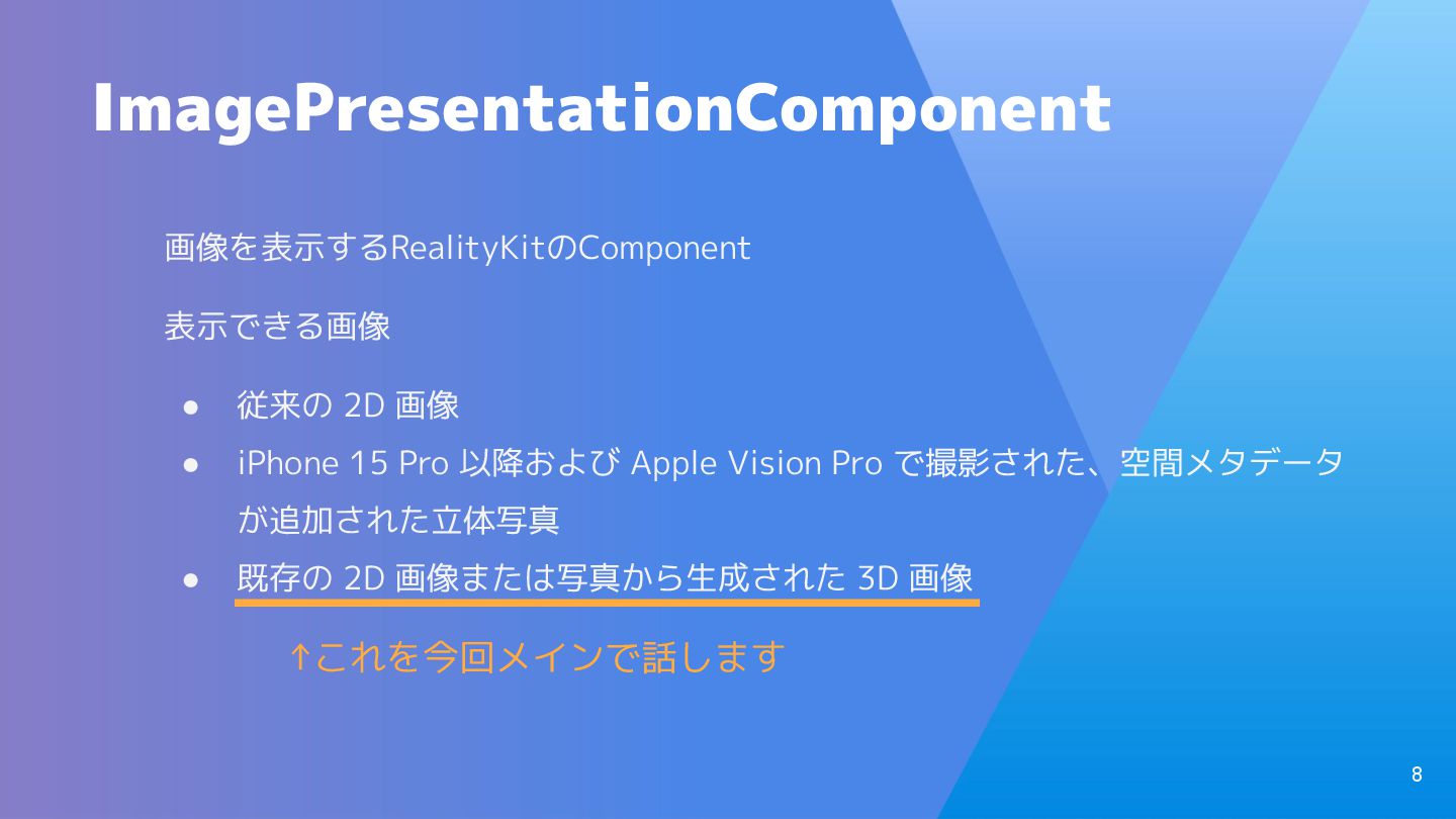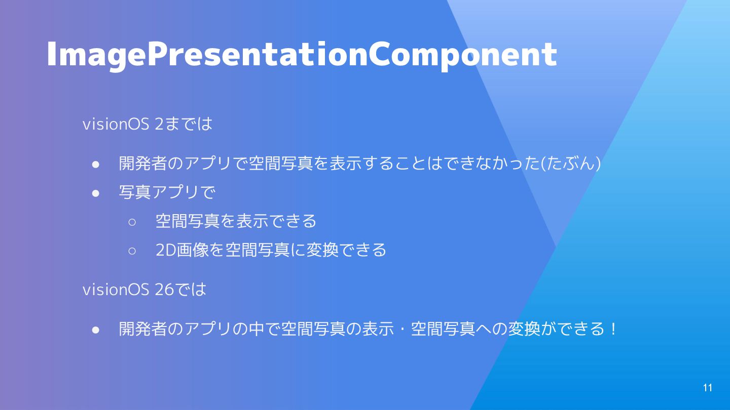 https://visionos-engineer.connpass.com/event/368679/ で発表した`ImagePresentationComponent`に関する資料です
