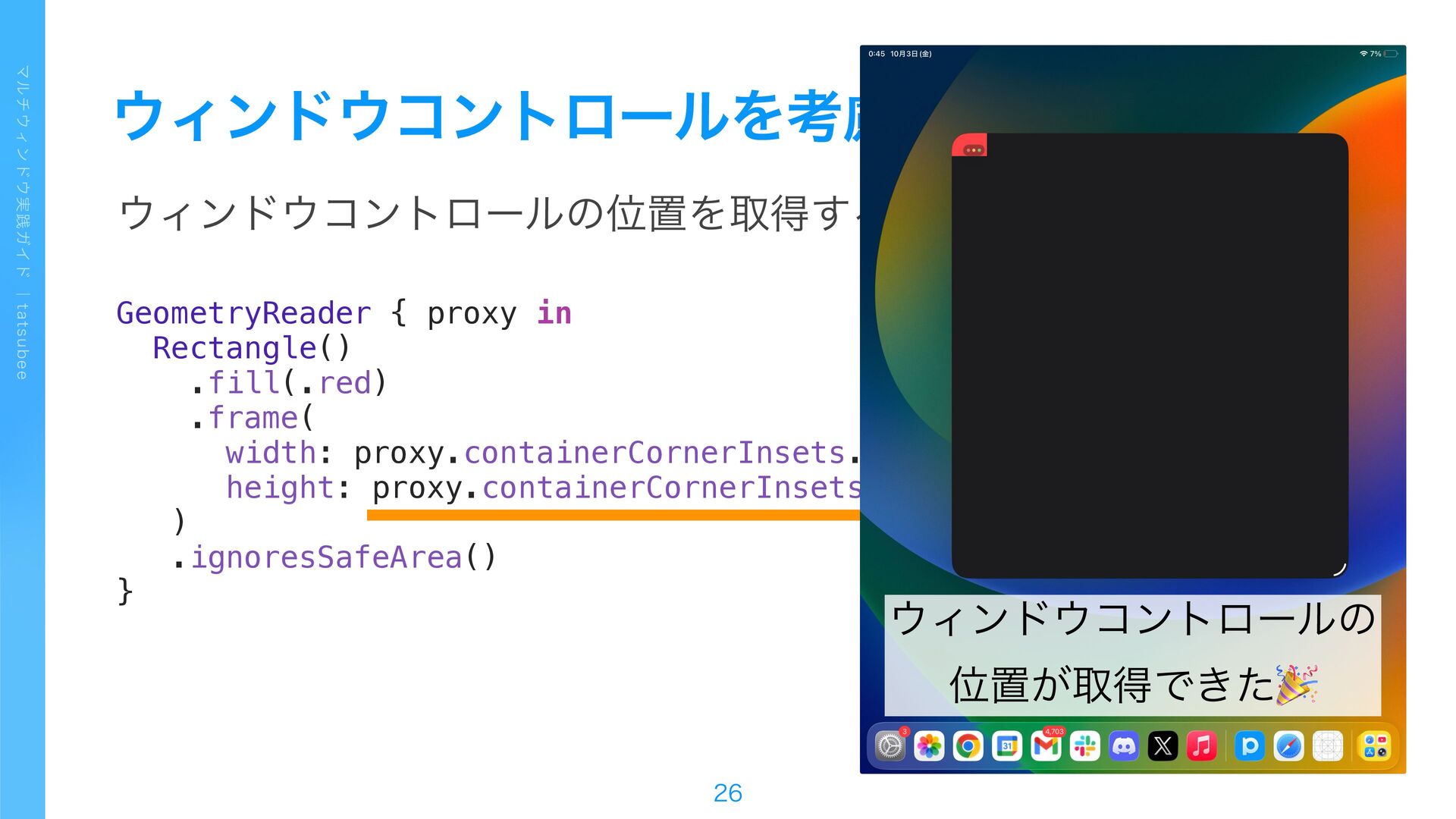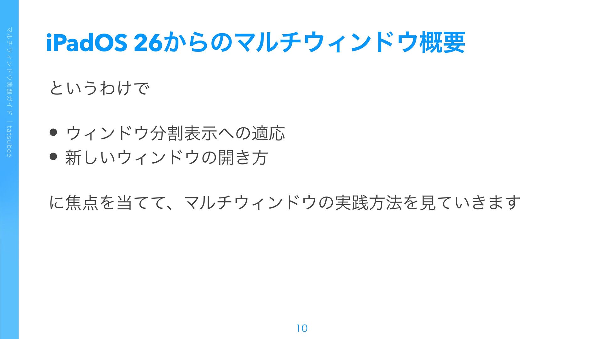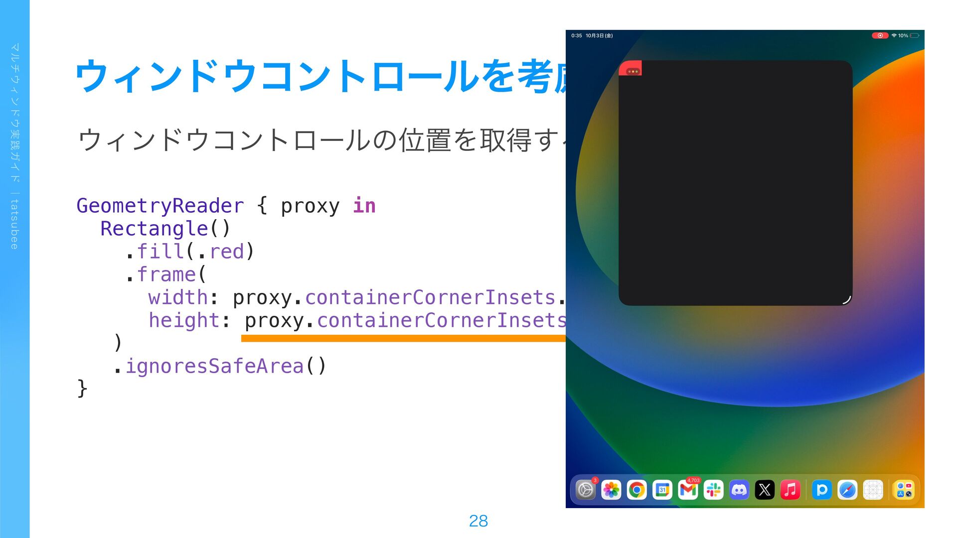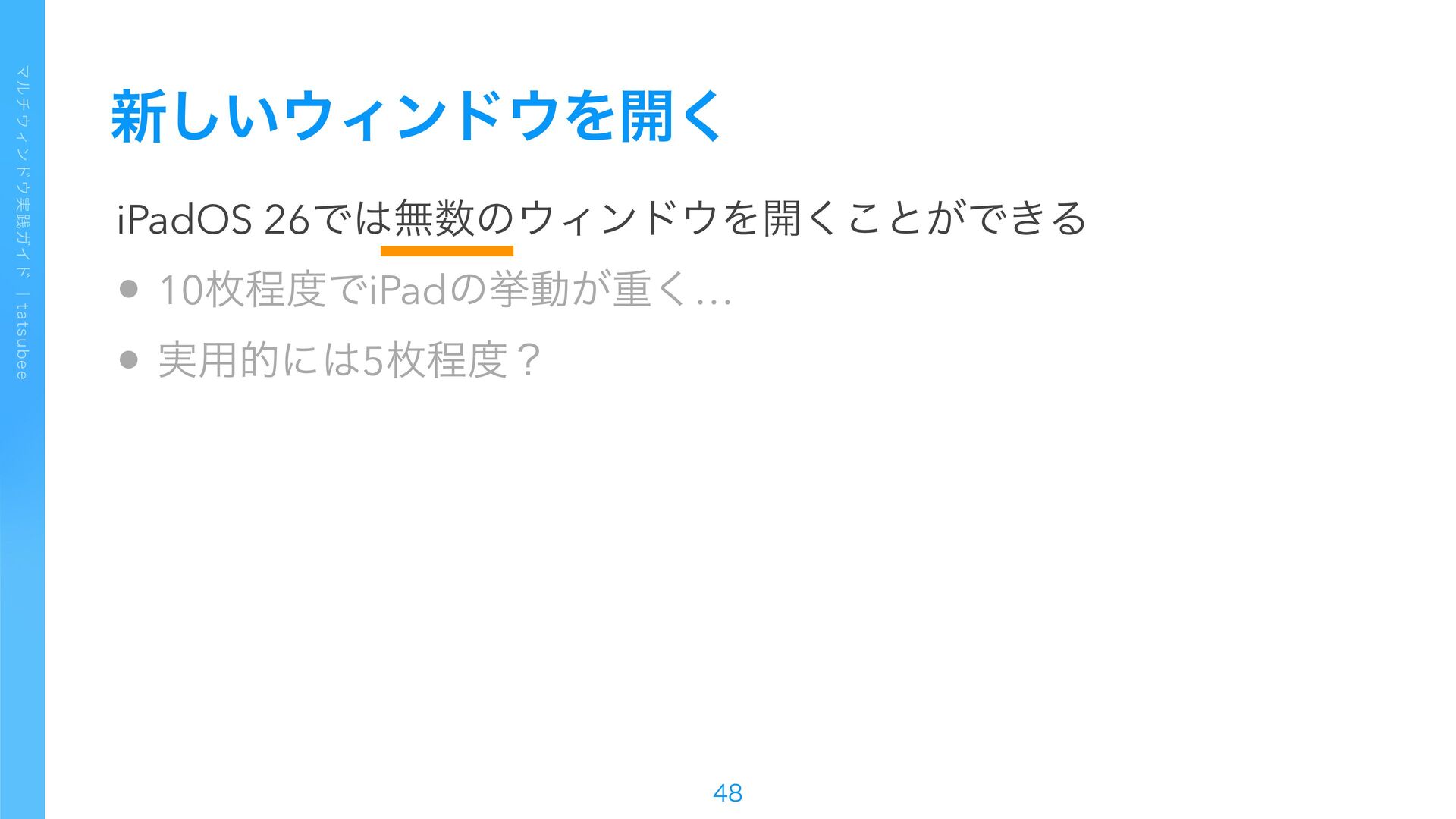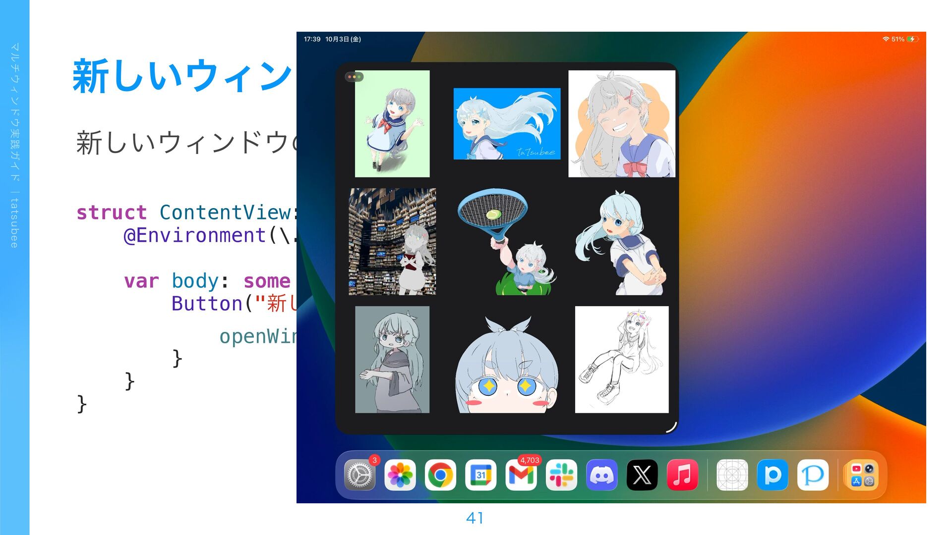 var body: some View { Image(resource) .onDrag { let userActivity = NSUserActivity( activityType: "dev.shoryu.MultiWindowExample.openWindow" ) userActivity.targetContentIdentifier = "targetContentIdentifier" return NSItemProvider(object: userActivity) } } } ϚϧνΟϯυ࣮ફΨΠυʛUBUTVCFF