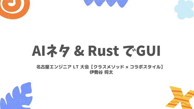 AIネタ & Rust でGUI 名古屋エンジニア LT 大会【クラスメソッド × コラボスタイル】 伊勢谷