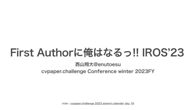 First Authorに俺はなるっ!! IROS’23 CCC2023 FY