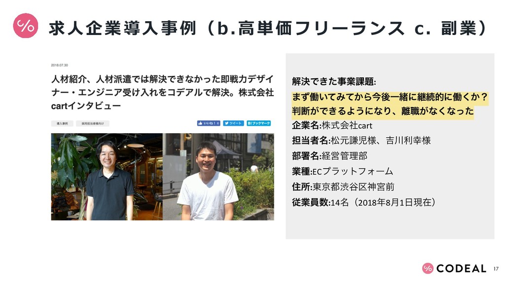 働き方が多様化し、労働力人口が減少する中で、事業のスピードを落とさないためにどうしたらいいのか?をコデアルの導入実例を元にご紹介しています。