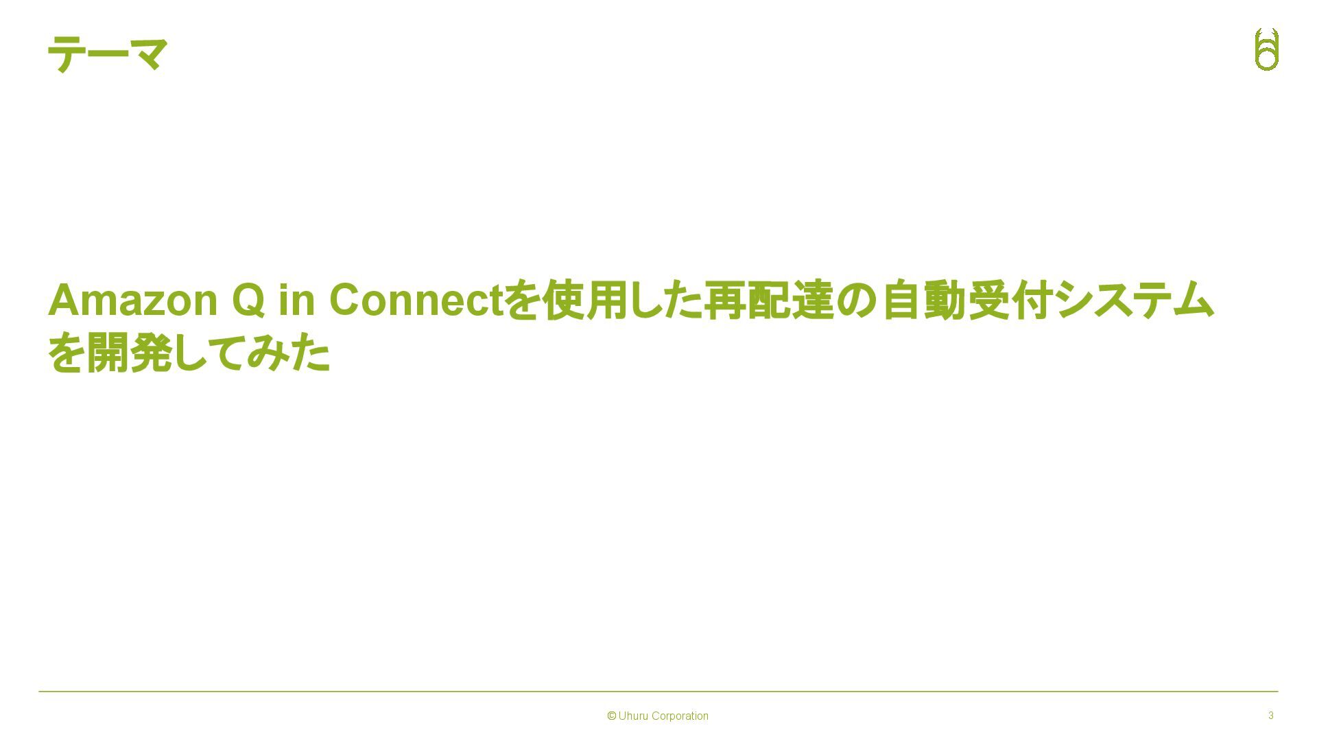 © Uhuru Corporation Amazon Q in Connectを使用した再配達の自動受付システム を開発してみた 3 テーマ