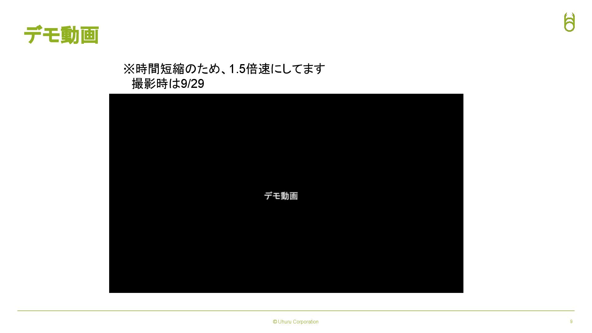 © Uhuru Corporation 9 デモ動画 ※時間短縮のため、1.5倍速にしてます 撮影時は9/29