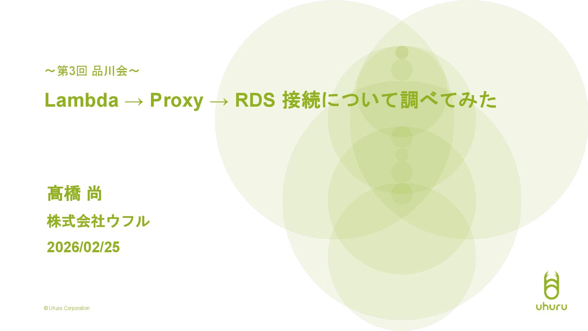 © Uhuru Corporation 〜第3回 品川会〜 Lambda → Proxy → RDS
