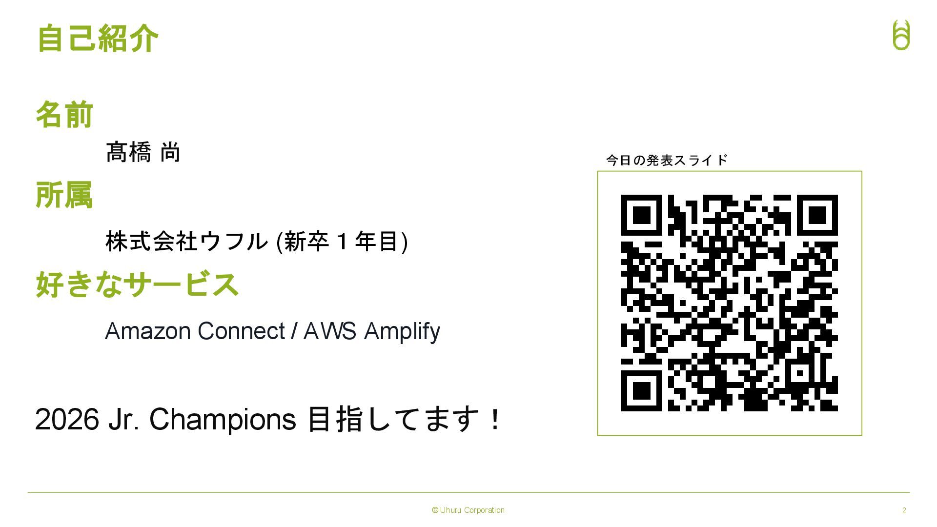 Amazon Connect / AWS Amplify 2026 Jr. Champions 目指してます! 2 自己紹介 今日の発表スライド