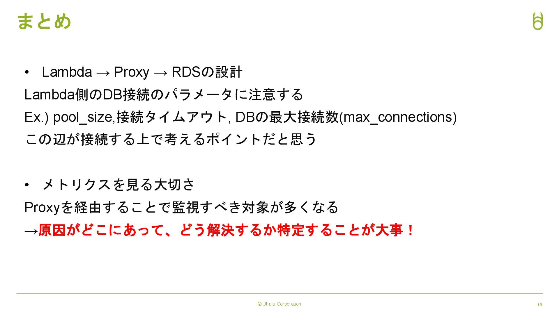 © Uhuru Corporation 19 まとめ • Lambda → Proxy →