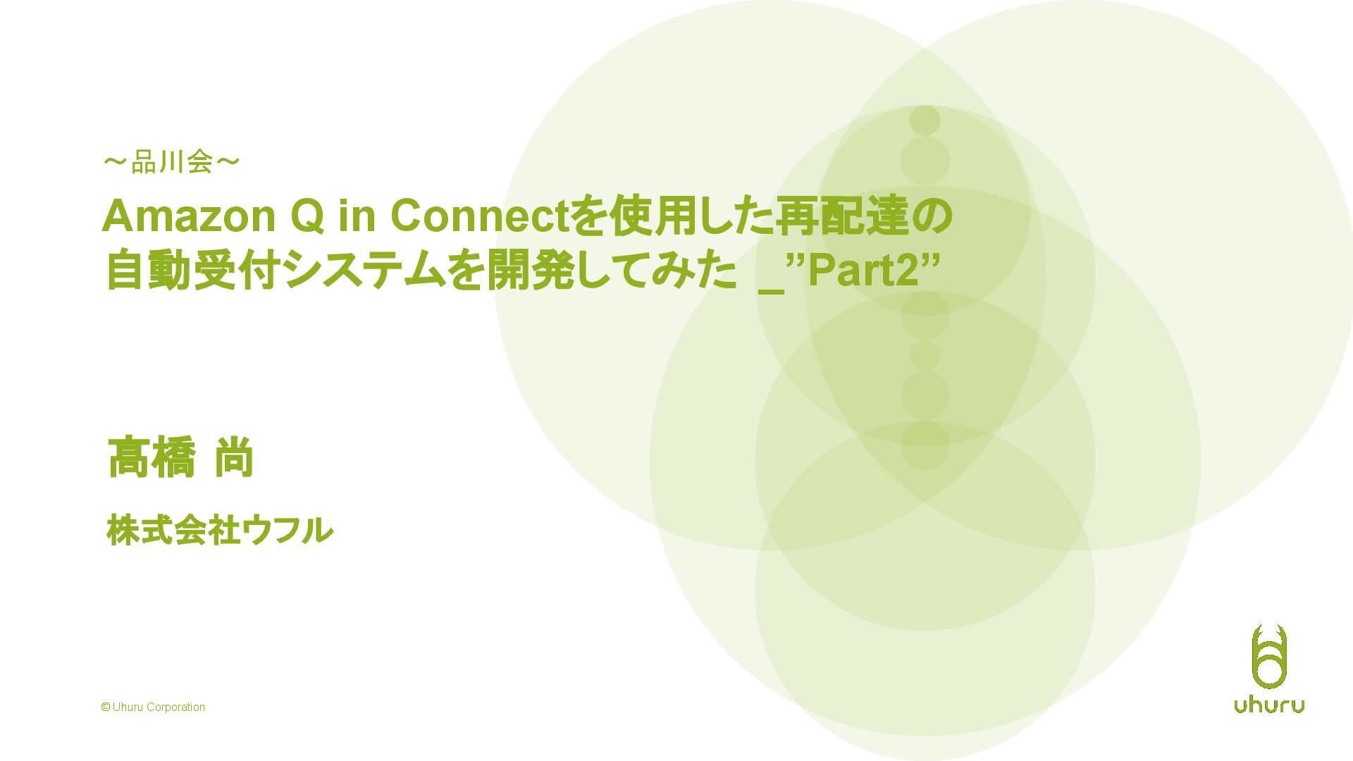 © Uhuru Corporation 髙橋 尚 株式会社ウフル 〜品川会〜 Amazon Q in