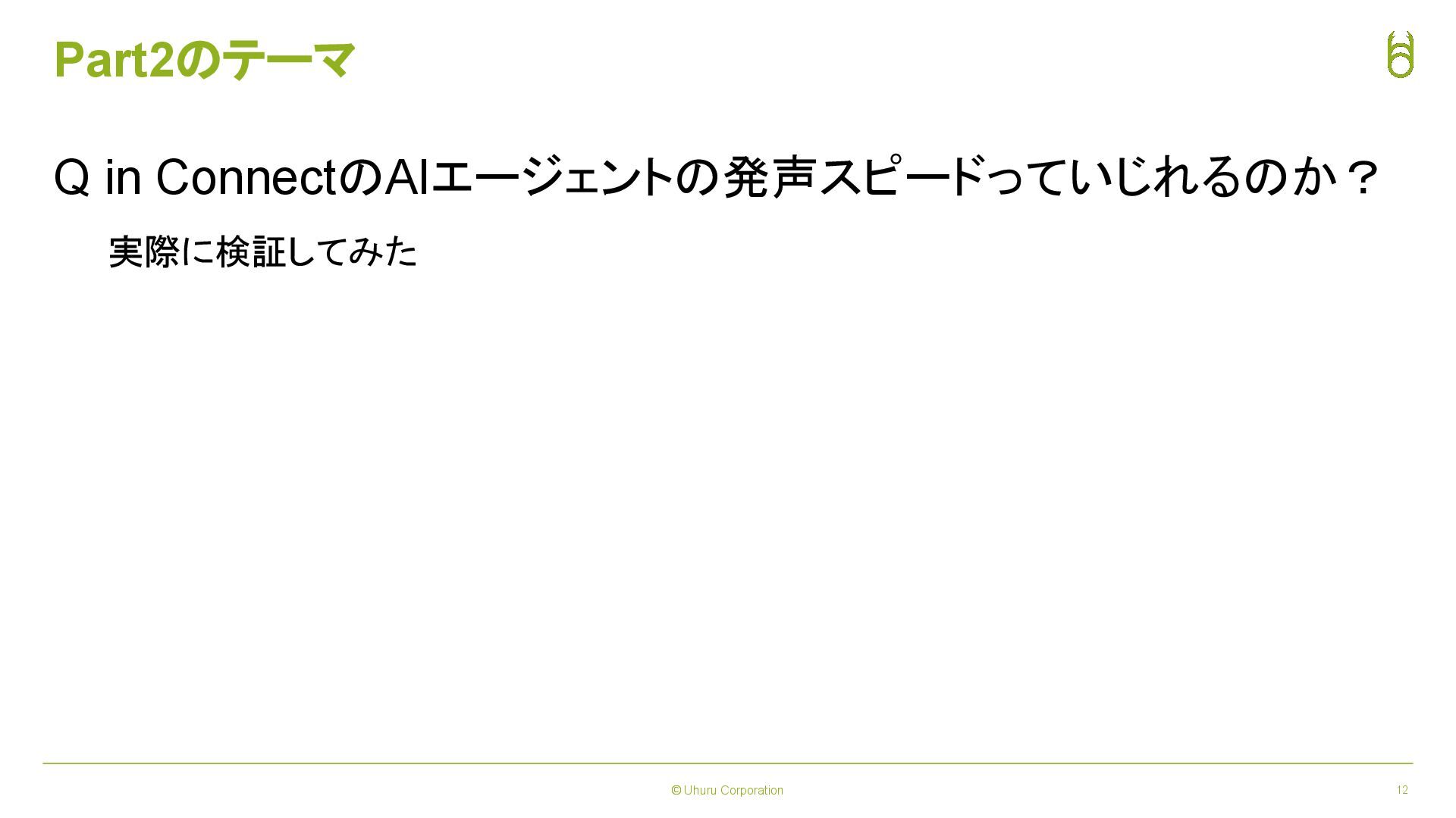 © Uhuru Corporation Q in ConnectのAIエージェントの発声スピードっていじれるのか? 実際に検証してみた 12 Part2のテーマ