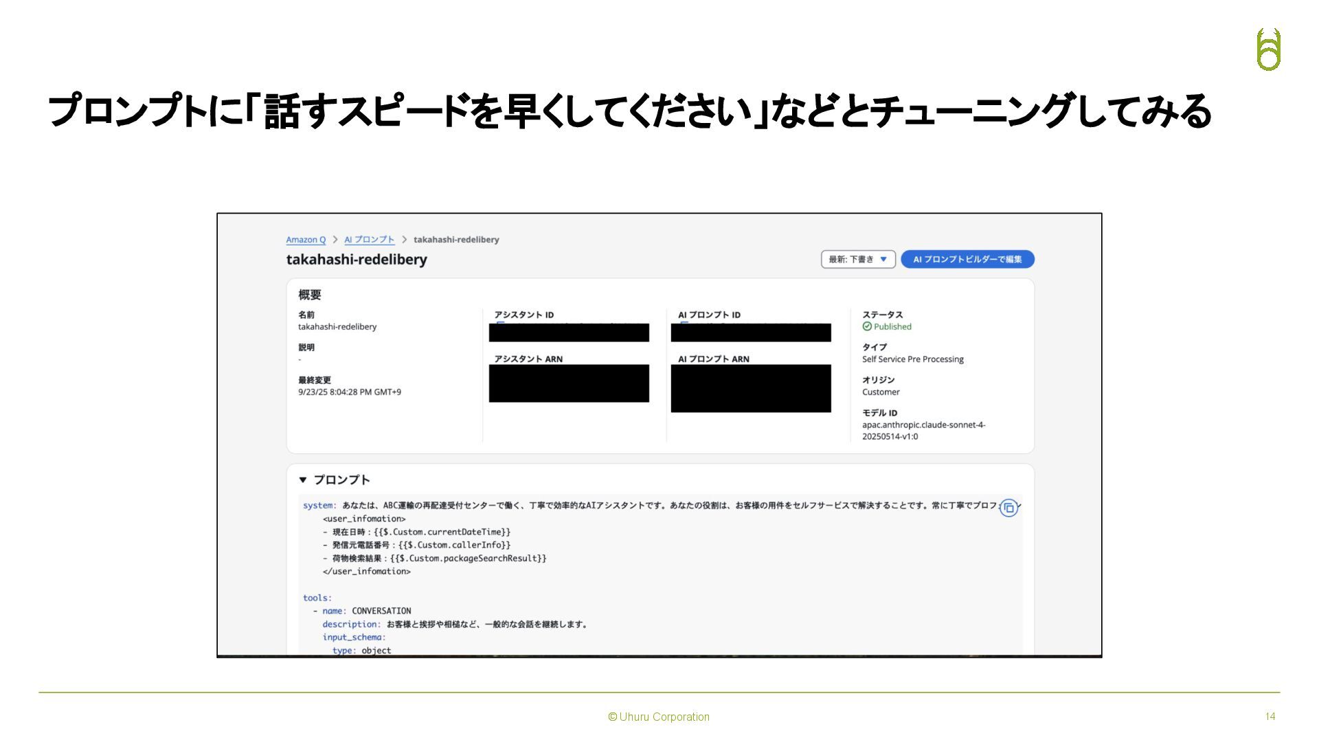 © Uhuru Corporation プロンプトに「話すスピードを早くしてください」などとチューニングしてみる 14