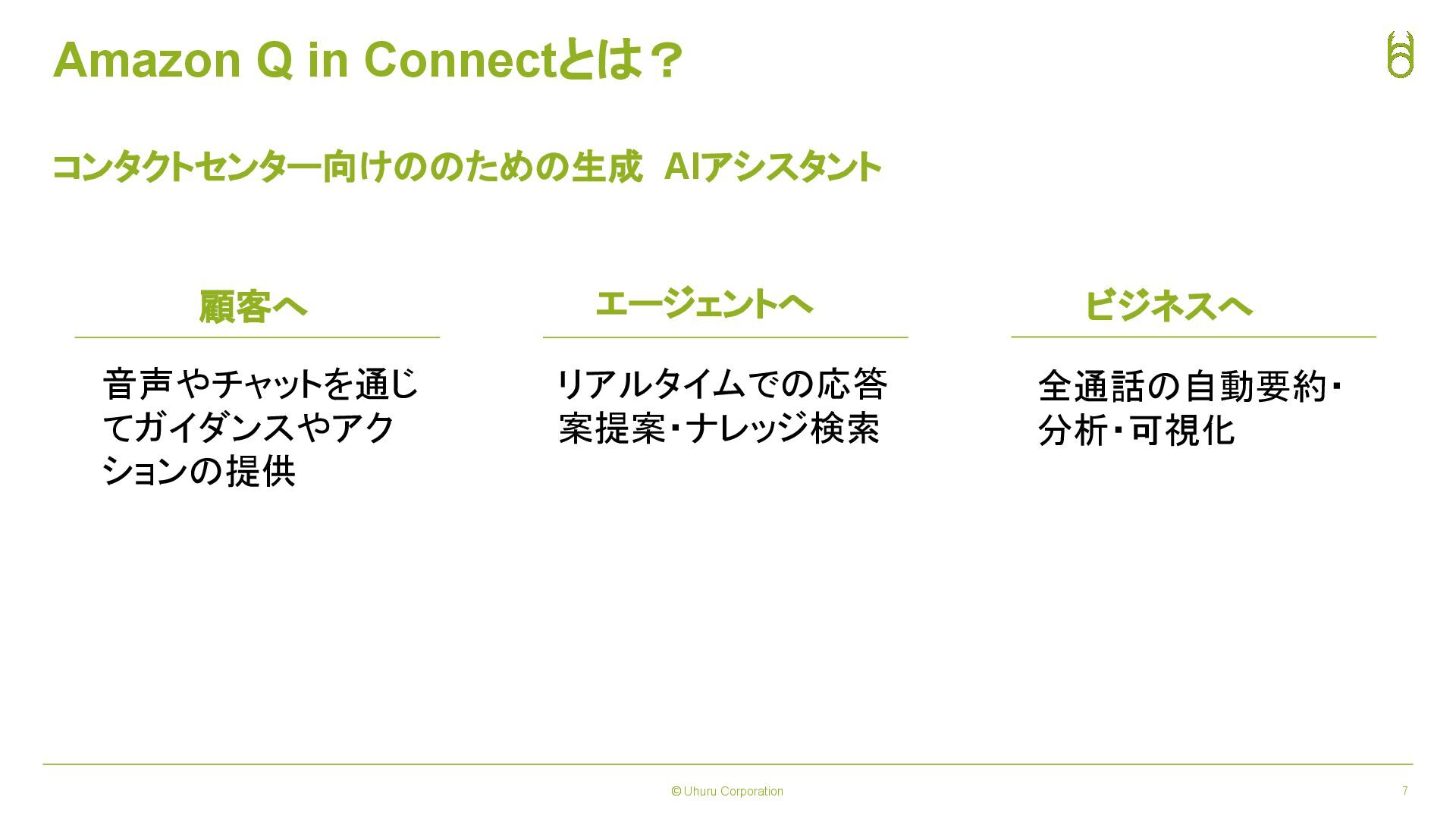 © Uhuru Corporation コンタクトセンター向けののための生成 AIアシスタント 7 Amazon Q in Connectとは?