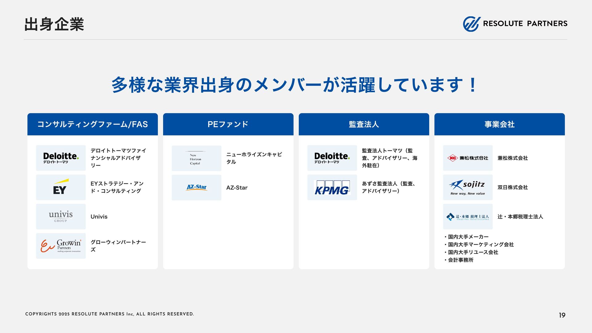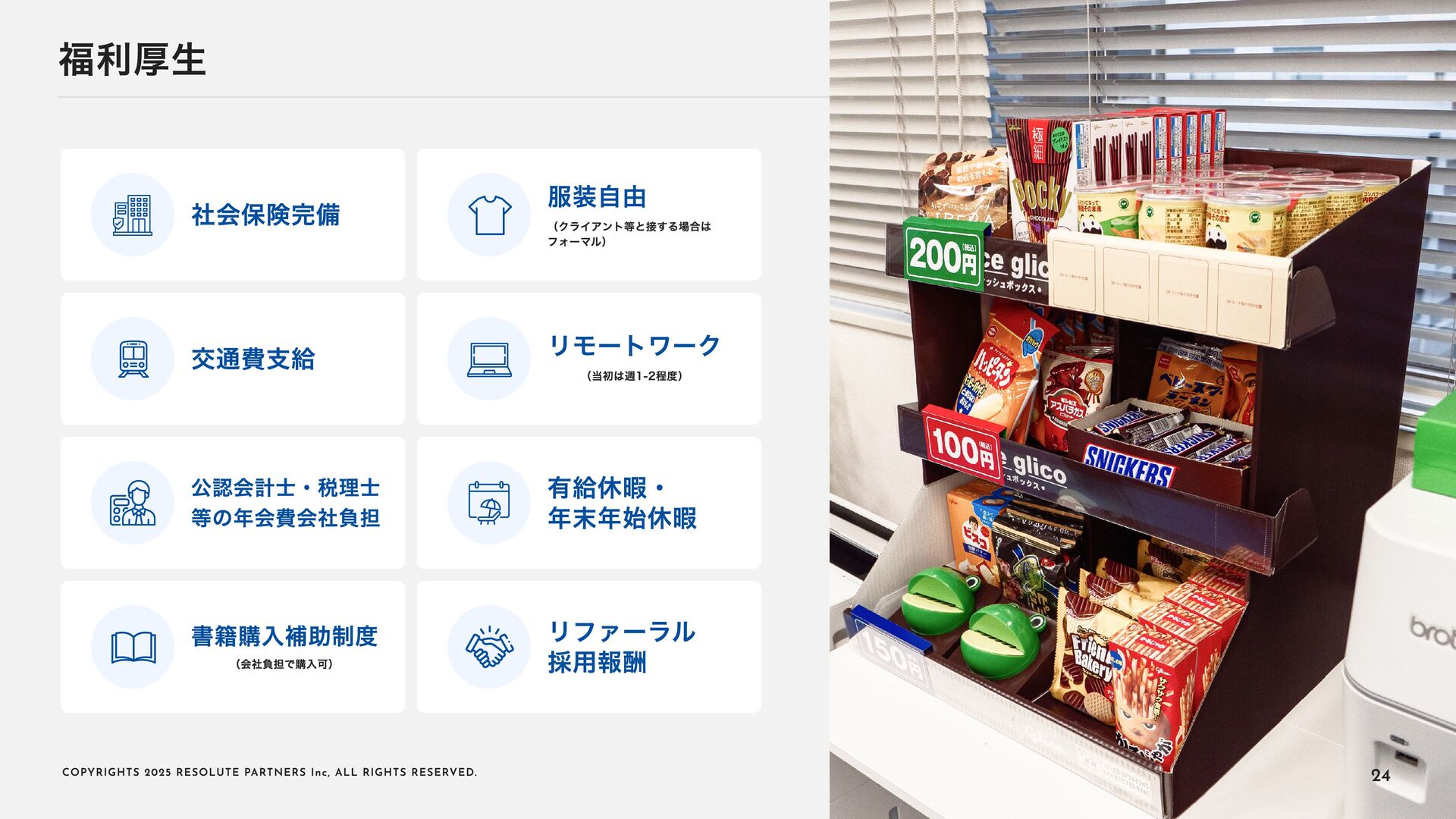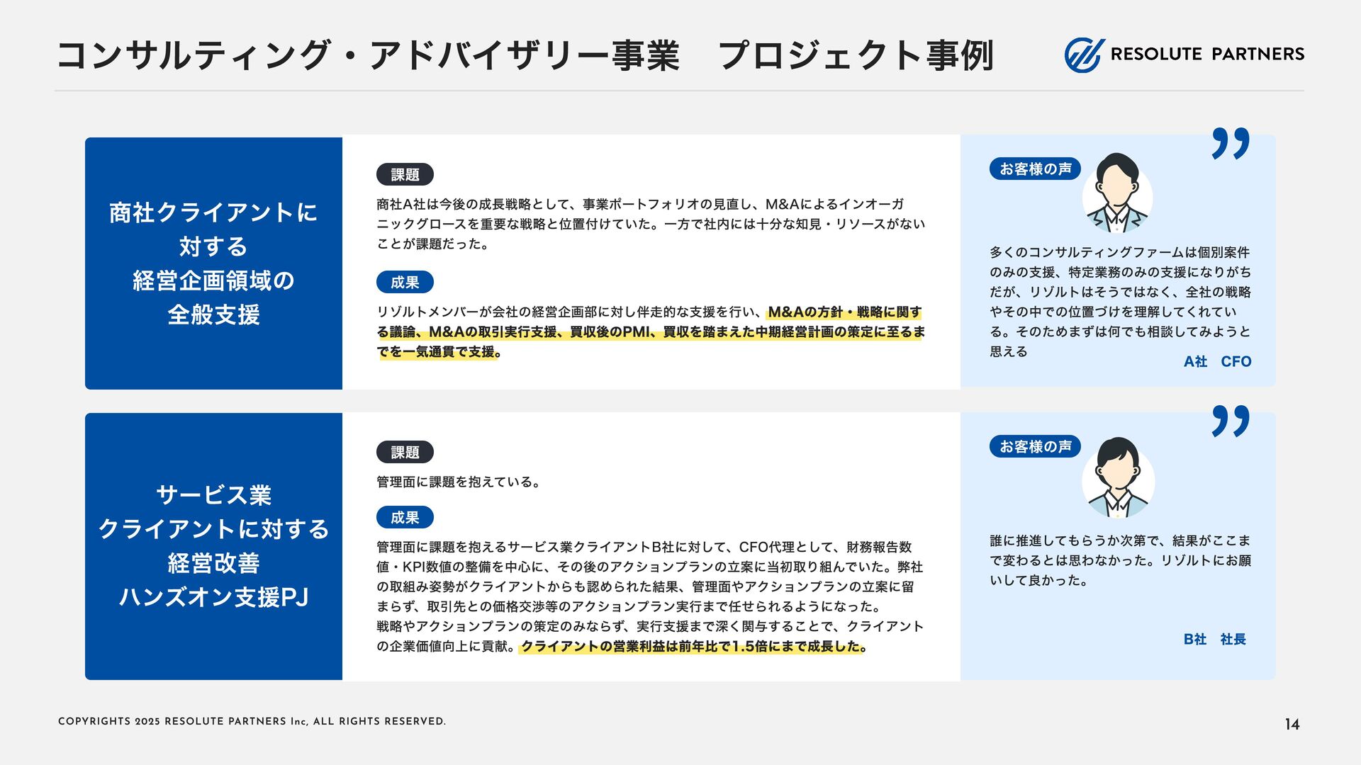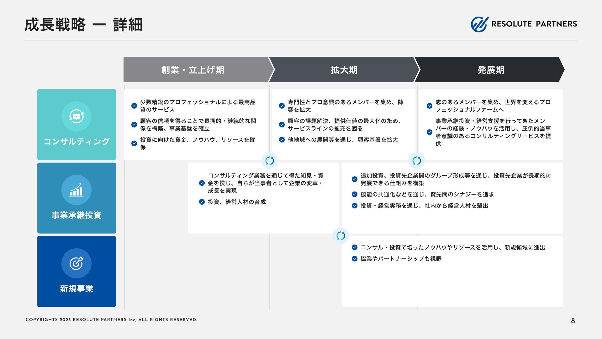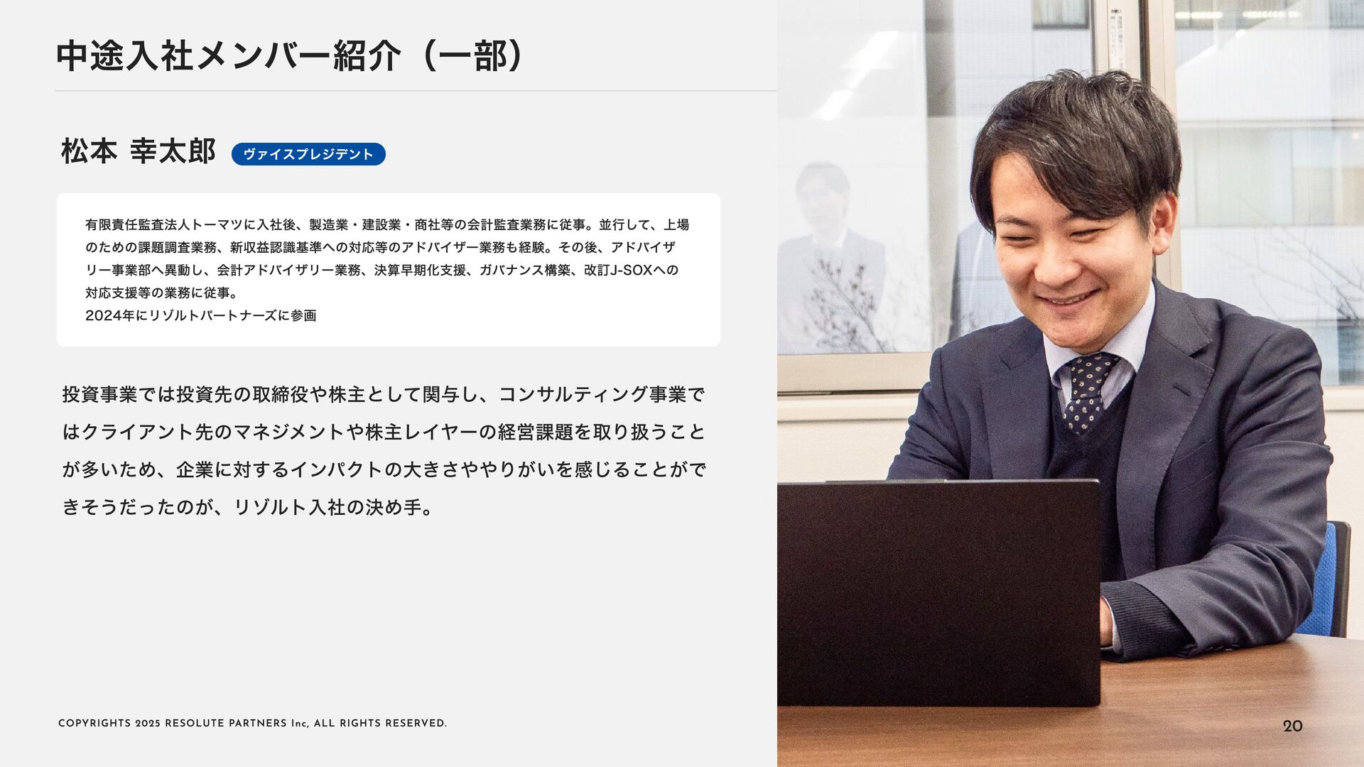 2 0 2 5 R E S O L U T E PA R T N E R S I n c , A L L R I G H T S R E S E RV E D . タイトル・キャリアパス アソシエイト・シニアアソシエイト ヴァイスプレジデント・ シニアヴァイスプレジデント ディレクター・ マネージングディレクター 2〜4年 4〜6年 ----- ヴァイスプレジデント・シニアヴァイ スプレジデントのもとで、プロフェッ ショナルとして、業務を遂行する 案件拡大のための提案をサポートする チームをリードし、クライアントマネ ジメントを行う 必要に応じて、案件を拡大する提案を 行う プロジェクト責任者・ファーム責任者 としてクライアントをリードする 案件を拡大し、部門・組織全体をリー ド・マネジメントする プロジェクトのチームメンバー プロジェクト(小規模)の案件責任者 プロジェクト(小 ~中 規模)の案件責 任者 プロジェクト(大規模)のチームメン バー プロジェクト(大規模)の案件責任者 業務内容 PJでの役割 年 収目安 500~1,000万円 (アサインされた各案件におけるパフォーマンスで評価) 1,000~1, 6 00万円 (基本的に案件の貢献売上で評価) 1, 2 00万円~上限なし (基本的に案件の貢献売上で評価) 22