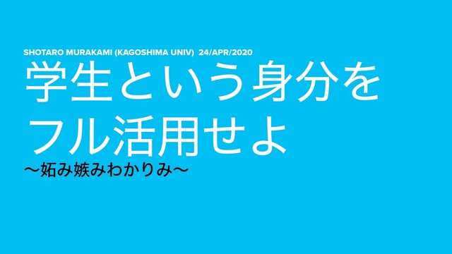 SHOTARO MURAKAMI (KAGOSHIMA UNIV) 24/APR/2020 ʙౄΈࣧΈΘ͔ΓΈʙ ֶੜͱ͍͏Λ ϑϧ׆༻ͤΑ