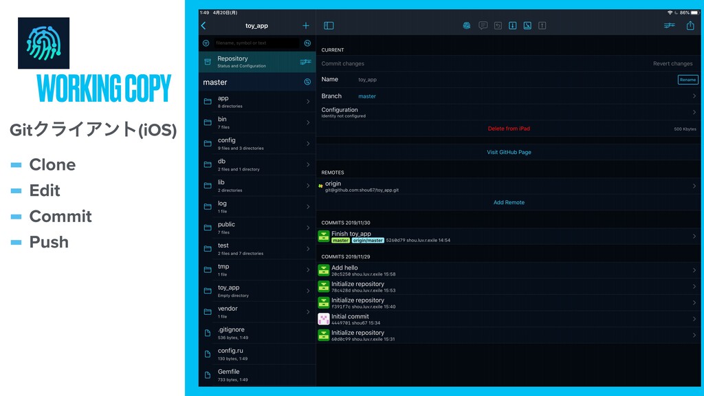 WORKING COPY GitΫϥΠΞϯτ(iOS) - Clone - Edit - Commit -