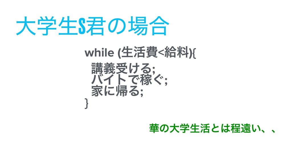 େֶੜS܅ͷ߹ while (ੜ׆අ<څྉ){ ߨٛड͚Δ; όΠτͰՔ͙; ՈʹؼΔ; } ՚ͷେֶੜ׆ͱఔԕ͍ɺɺ