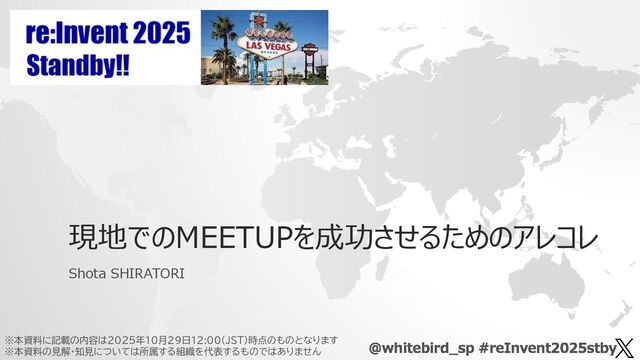 保有資格 しらとり しょうた 好きなAWSサービス Amazon VPC ネットワークスペシャリスト 情報セキュリティスペシャリスト 2020/2021/2022 APN AWS Top Engineers 2023/2024/2025 Japan AWS Top Engineers 2023/2024 Japan AWS All Certifications Engineers 2024/2025 AWS Ambassadors 好きな言葉 Knowledge is Power./Insist on the Highest Standards. Any sufficiently advanced technology is indistinguishable from magic. コミュニティ AWS Ambassador - Certification All-Star Award 2024/2025 今ハマってるAWS関連 Amazon Q Developer CLIで ひたすら楽して構築保守 @whitebird_sp #reInvent2025stby